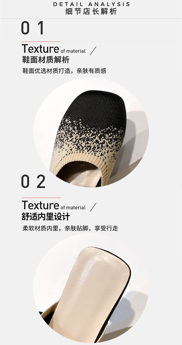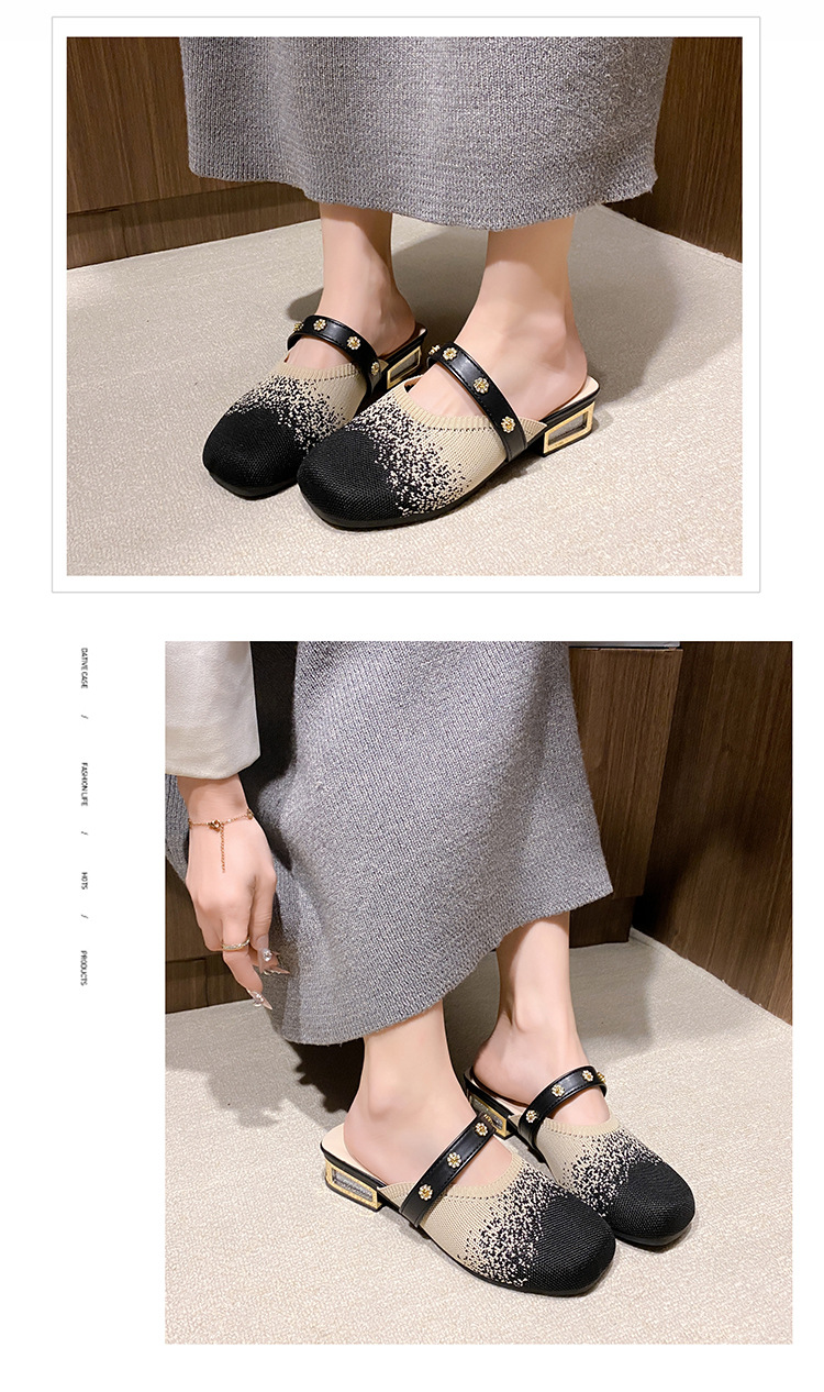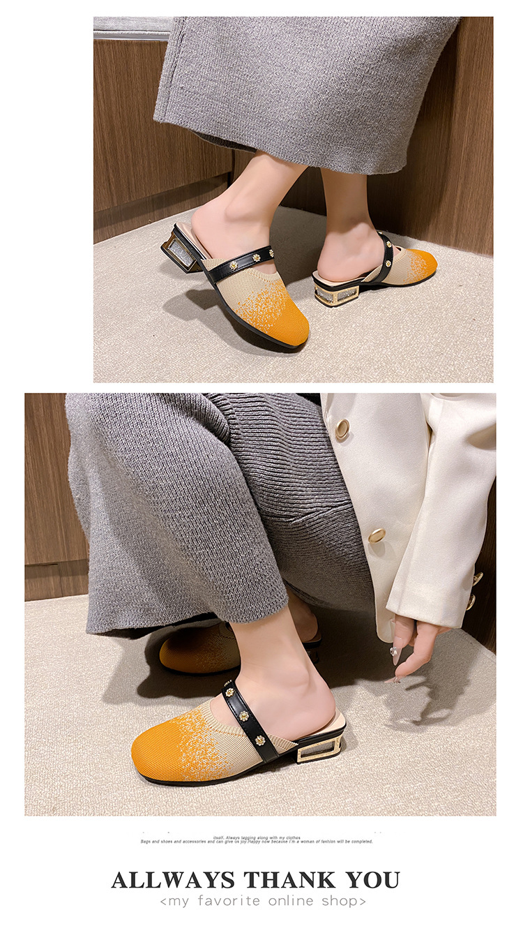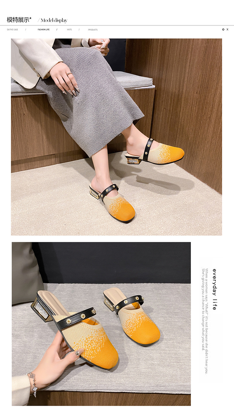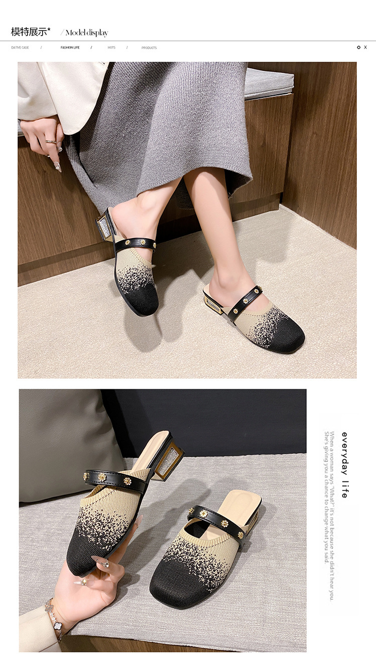 의상 스퀘어 하이힐 로퍼 그라데이션 플라잉 위버 신발 대외 무역 도매 2025 새로운 바오 터 하프 슬리퍼 여성스토어 가기