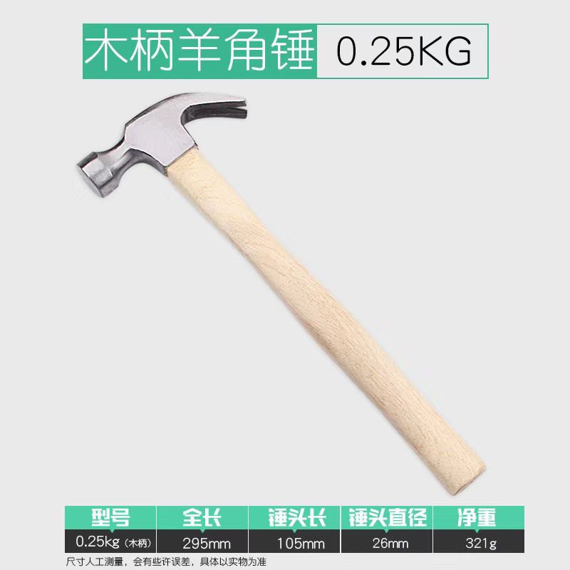 • 나무 손잡이가 달린 클로 해머 0.25KG