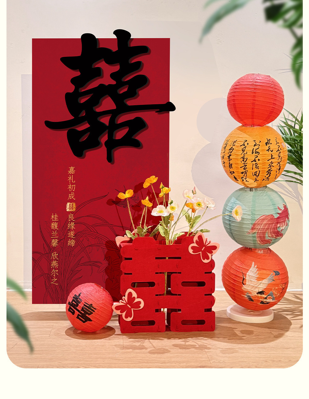 웨딩 룸 레이아웃 세트 남성과 여성의 사각형 침실 배경 벽 장식 결혼식 새 집 kt 보드 유형 캐릭터 꽃 랜턴 장식스토어 가기