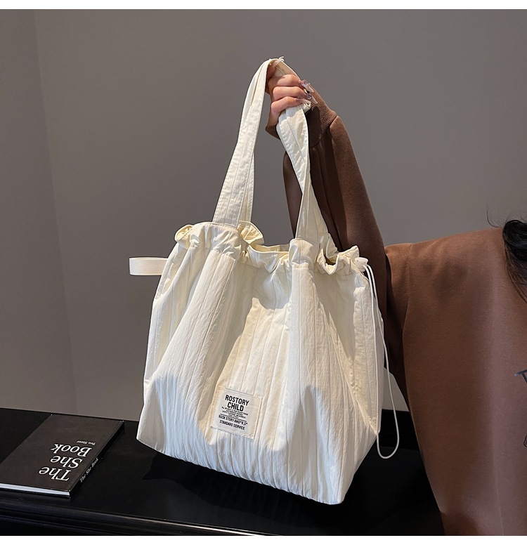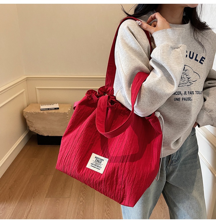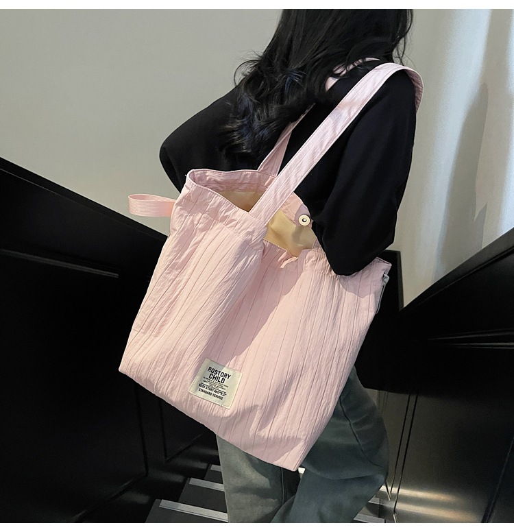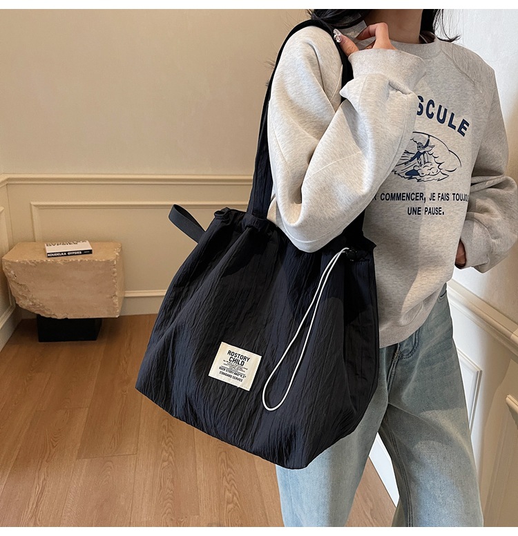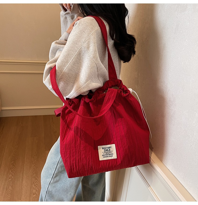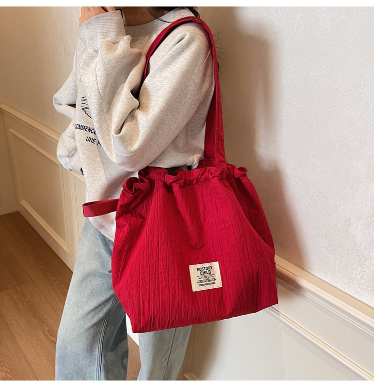 일본 예술적 주름 캔버스 핸드백 인즈 유행 나일론 토트 백 유행 자수 스트링 싱글 숄더 여성용 가방스토어 가기