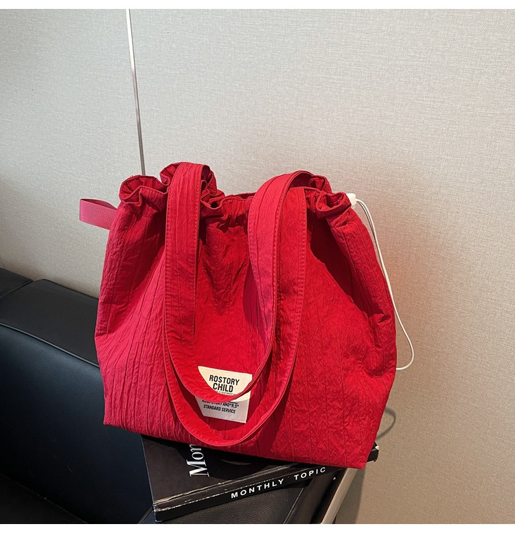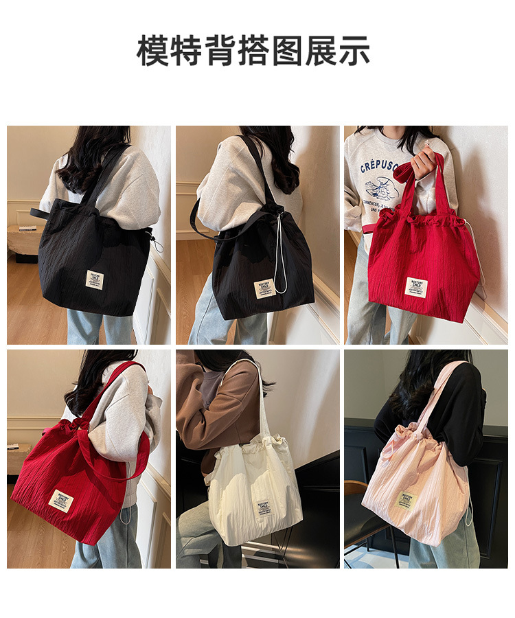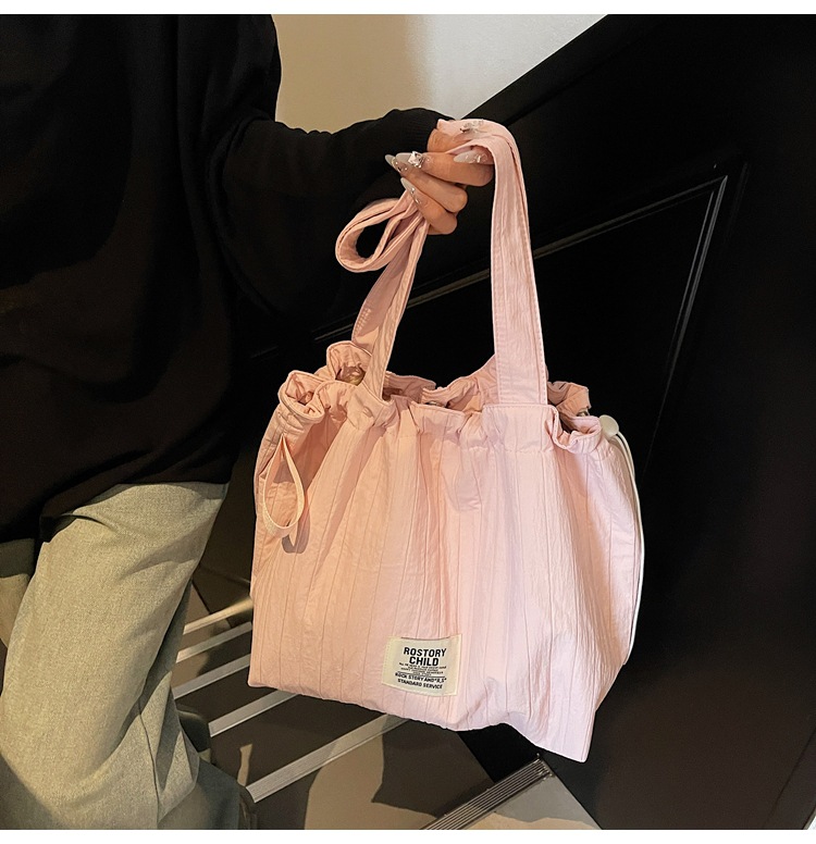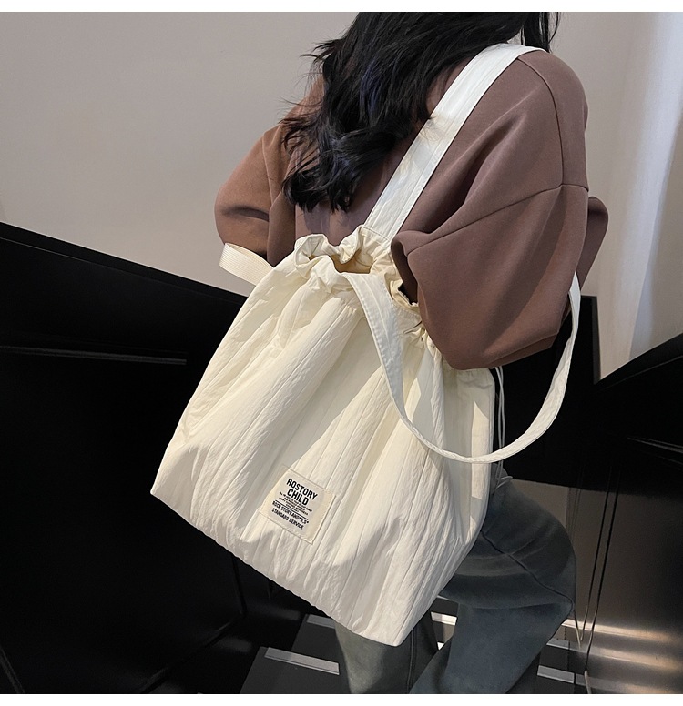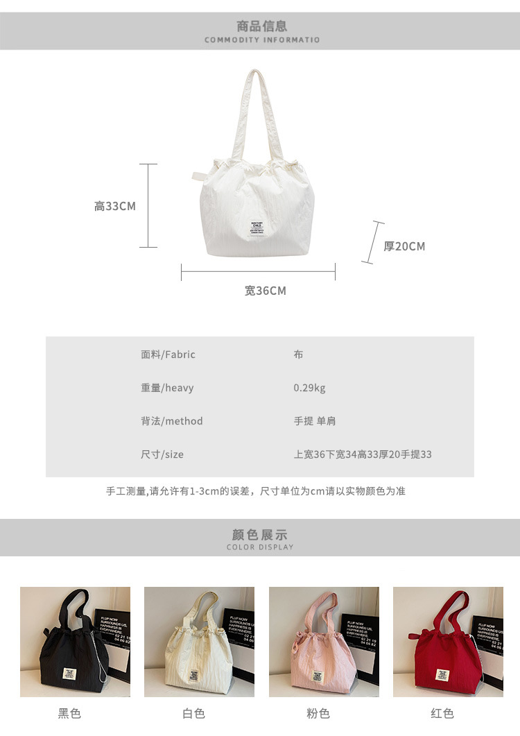 일본 예술적 주름 캔버스 핸드백 인즈 유행 나일론 토트 백 유행 자수 스트링 싱글 숄더 여성용 가방스토어 가기