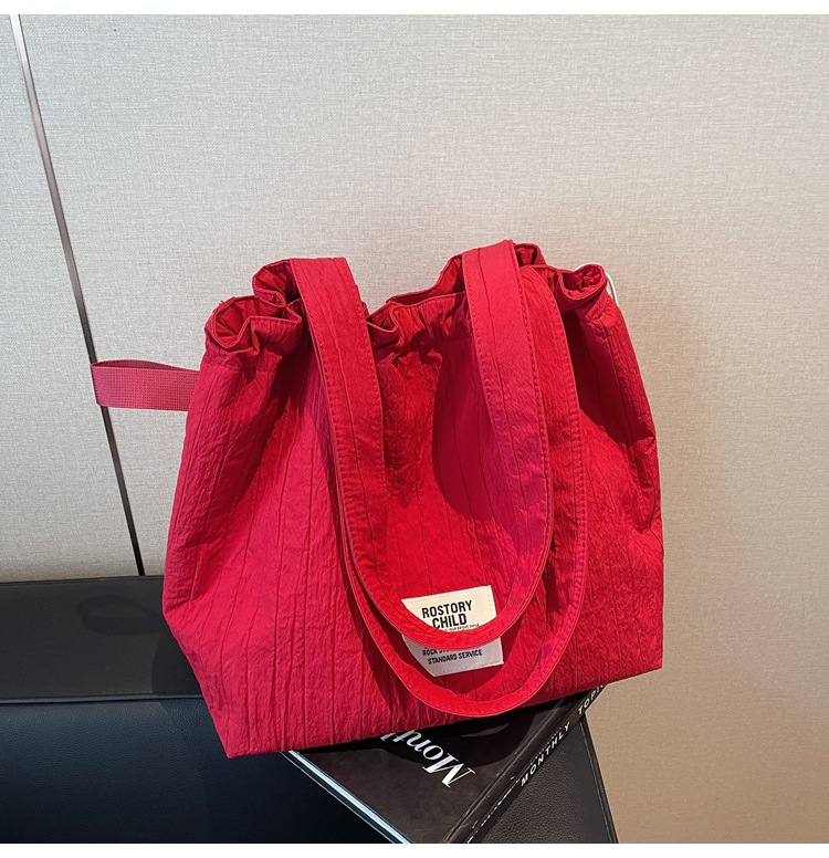 일본 예술적 주름 캔버스 핸드백 인즈 유행 나일론 토트 백 유행 자수 스트링 싱글 숄더 여성용 가방