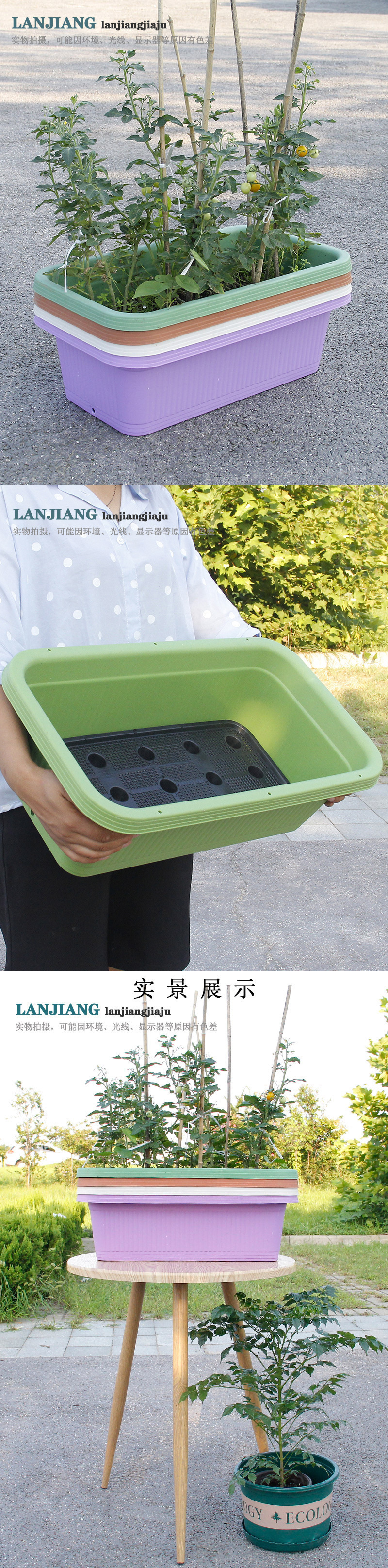두꺼운 발코니 야채 심기 분지 직사각형 플라스틱 꽃 냄비 가정용 실내 야채 다육 질 심기 상자 가정용 부추 분지