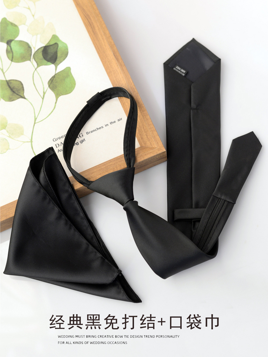 • 글로시 블랙 타이 + 포켓스퀘어/핸드타이 8cm
