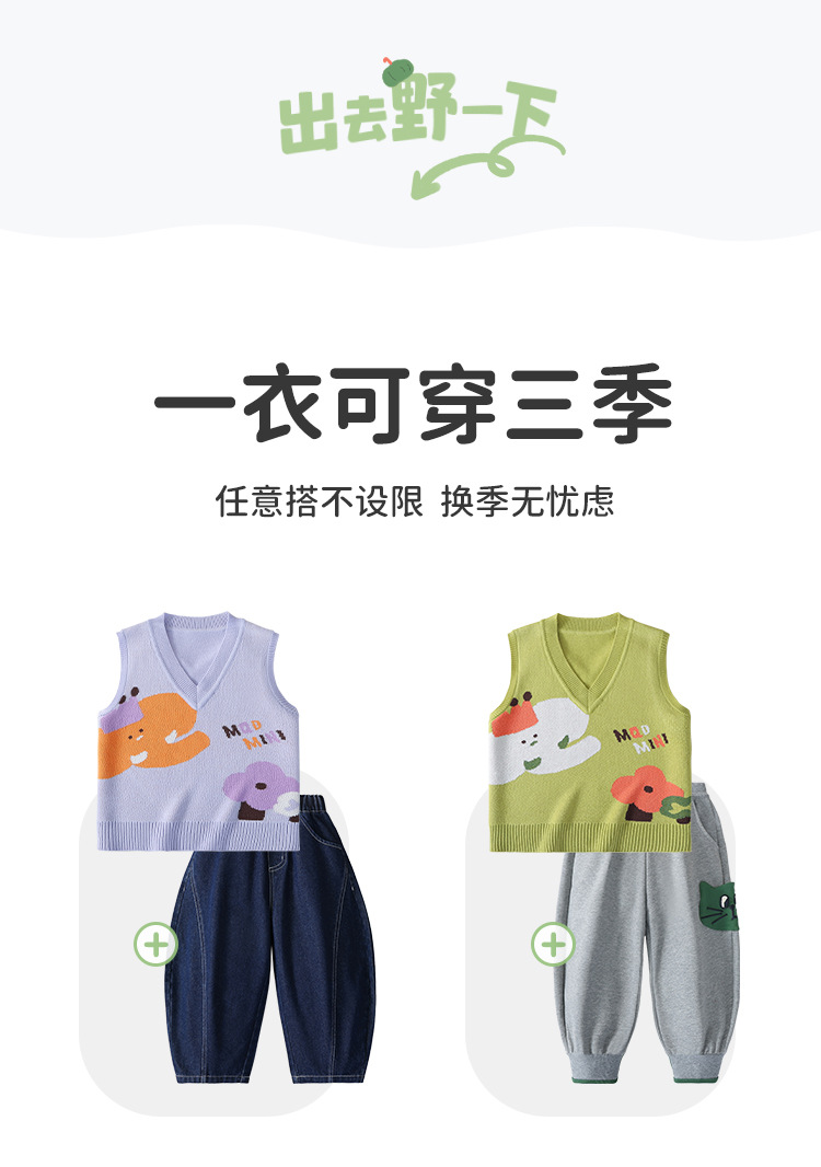 MQDmini 어린이 조끼 니트웨어 재킷 봄 새 소년 및 소녀 조끼 아기의 허리 코트 패션 타이드
