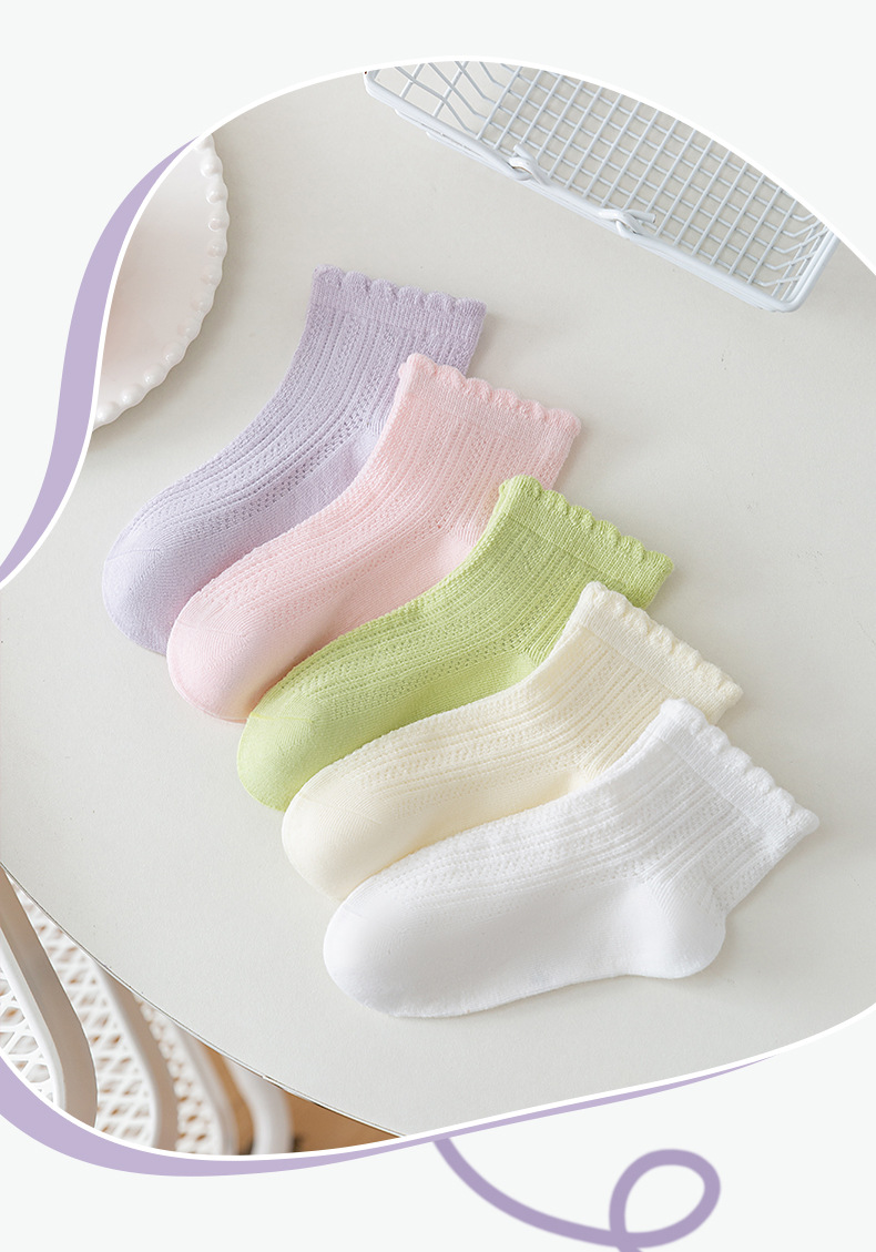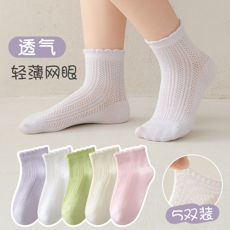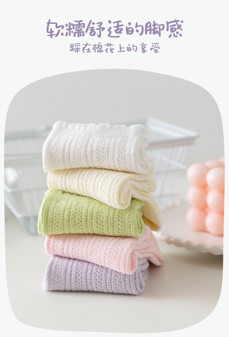 소녀 양말 솔리드 컬러 레이스 공주 양말 여름 메쉬 얇은 여성의 달콤한 로리타 아기 미드 튜브 양말 면화