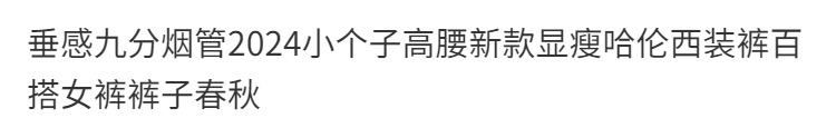 9 점 연기 파이프 2024 작은 높은 허리 새 슬리밍 할란 바지 올 매치 스트레이트 바지 봄과 가을