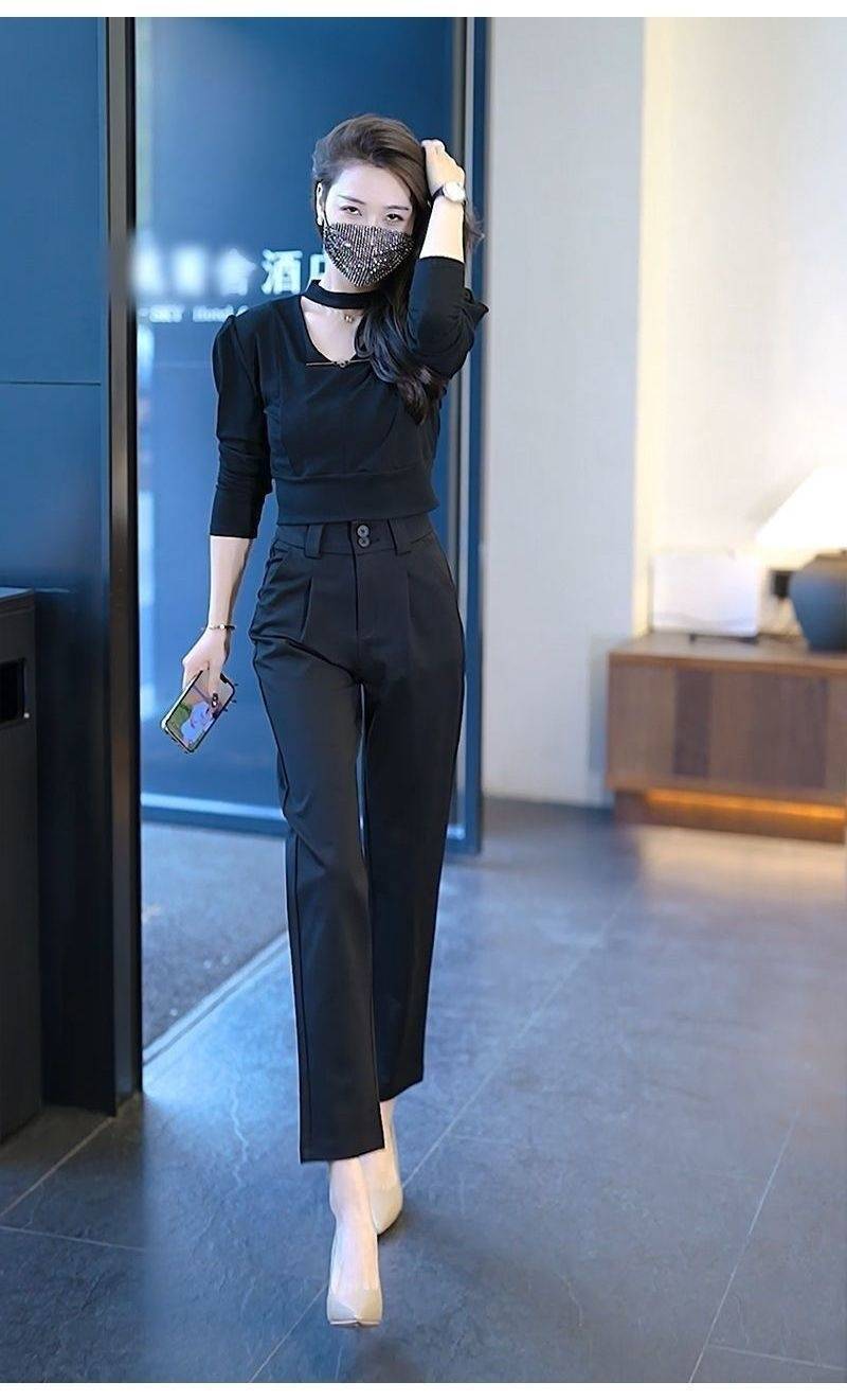 9 점 연기 파이프 2024 작은 높은 허리 새 슬리밍 할란 바지 올 매치 스트레이트 바지 봄과 가을스토어 가기