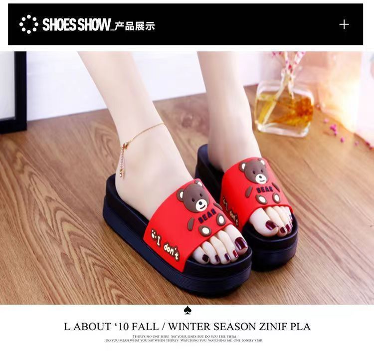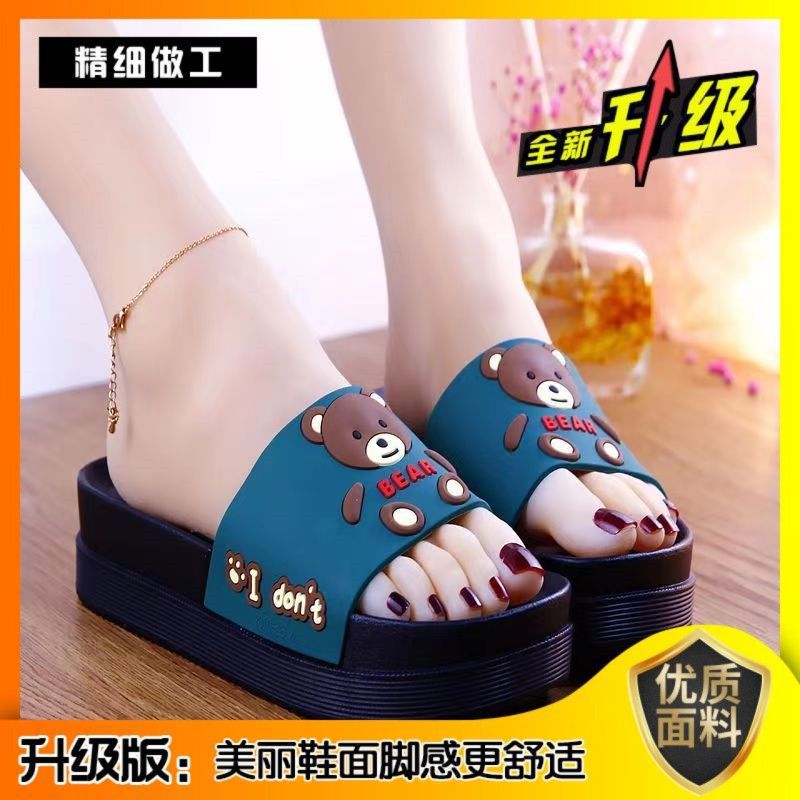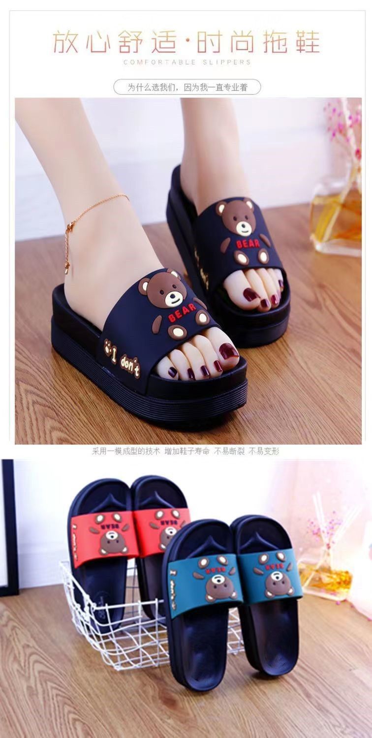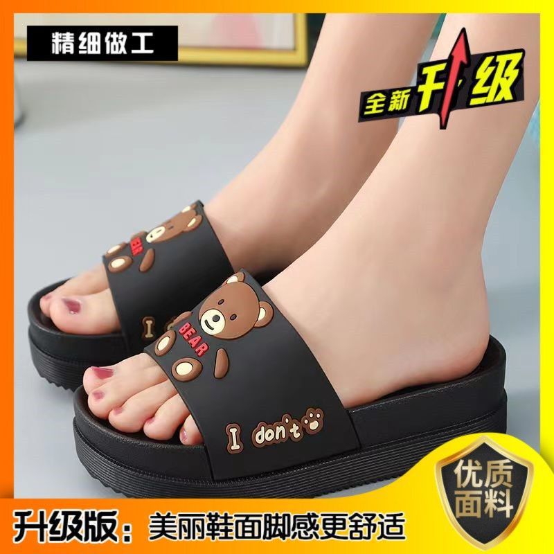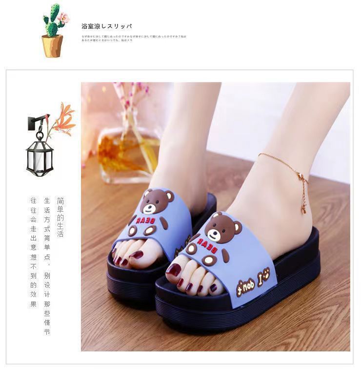 여름 하이힐 두꺼운 슬리퍼 여성용 외부 착용 귀여운 만화 곰 슬리퍼 홈 입욕 침실 슬리퍼 여성용 여름스토어 가기