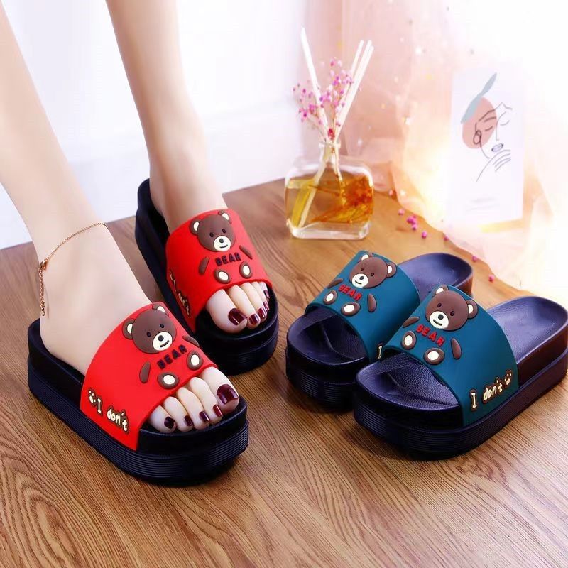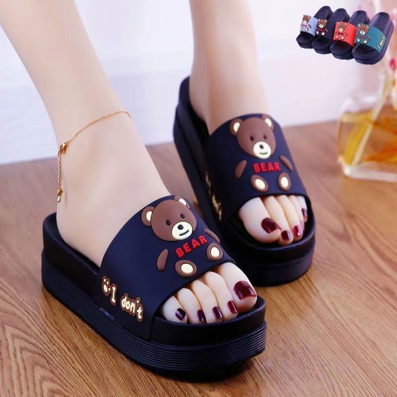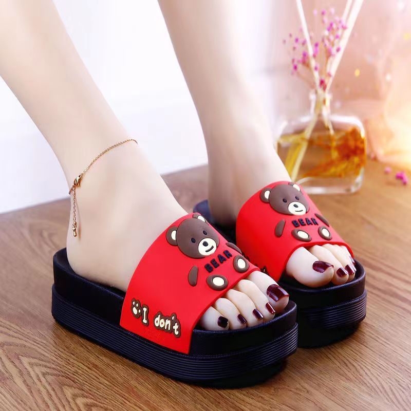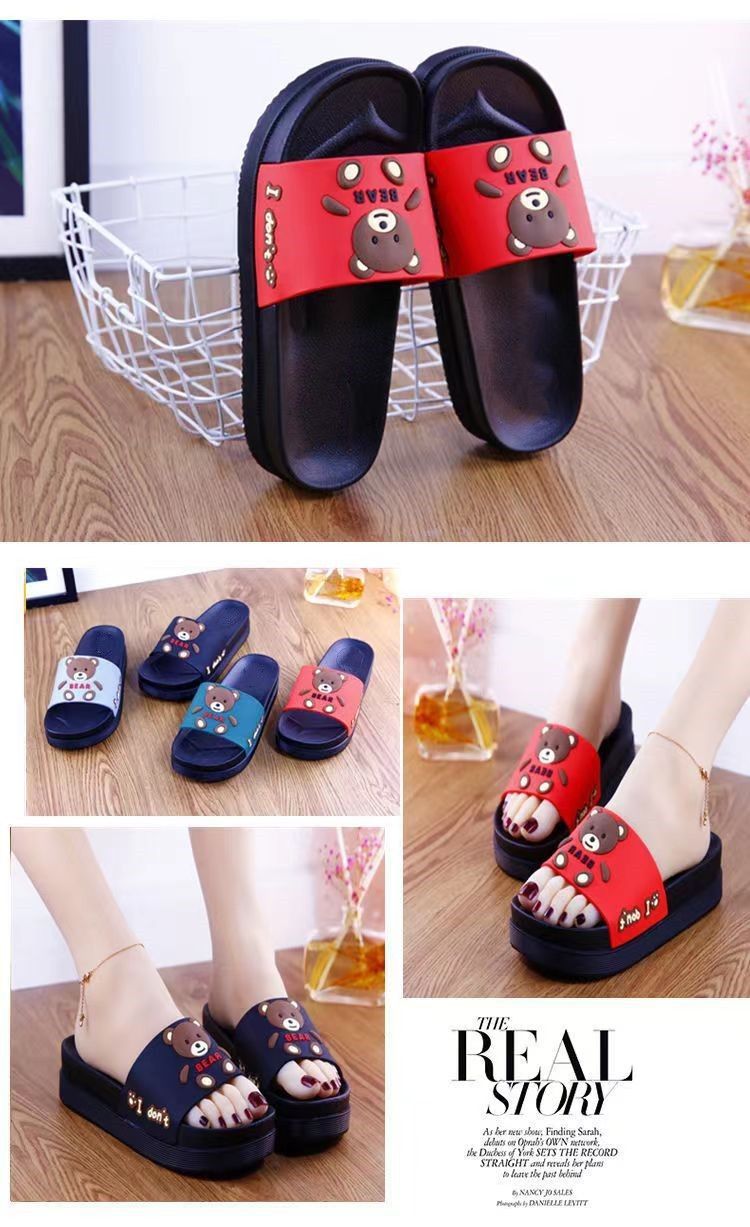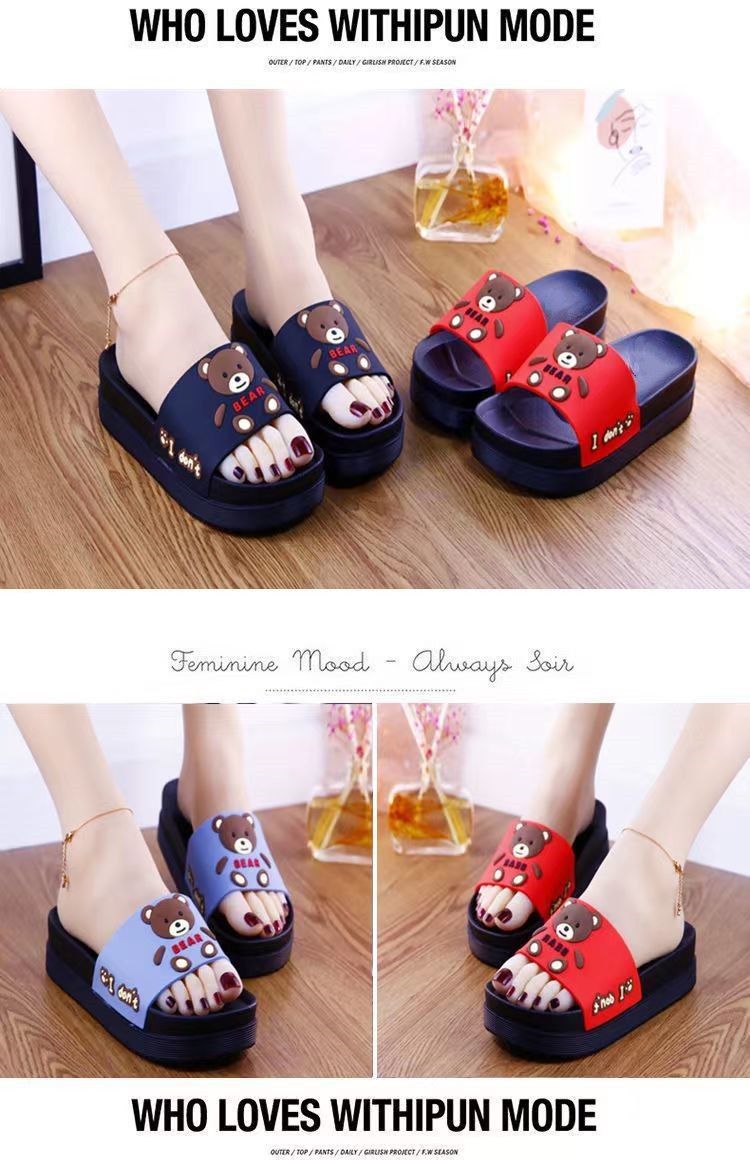 여름 하이힐 두꺼운 슬리퍼 여성용 외부 착용 귀여운 만화 곰 슬리퍼 홈 입욕 침실 슬리퍼 여성용 여름스토어 가기