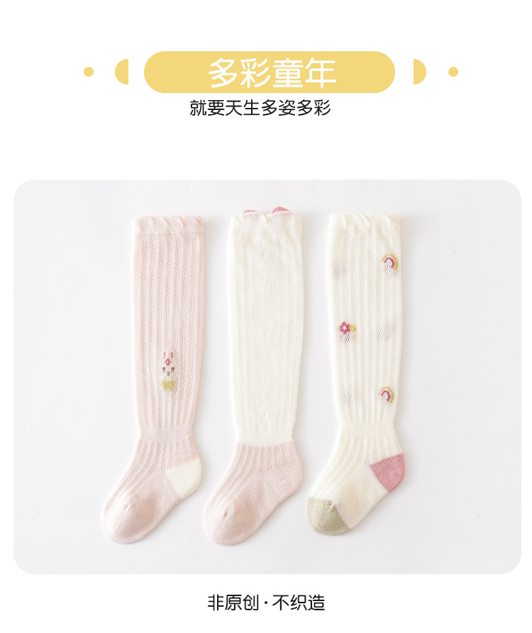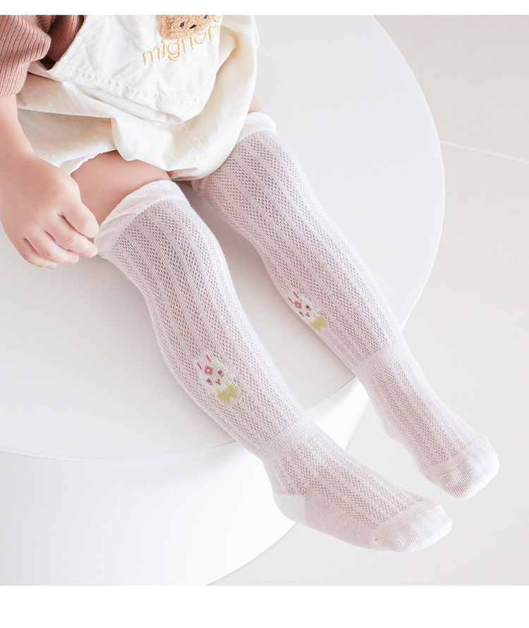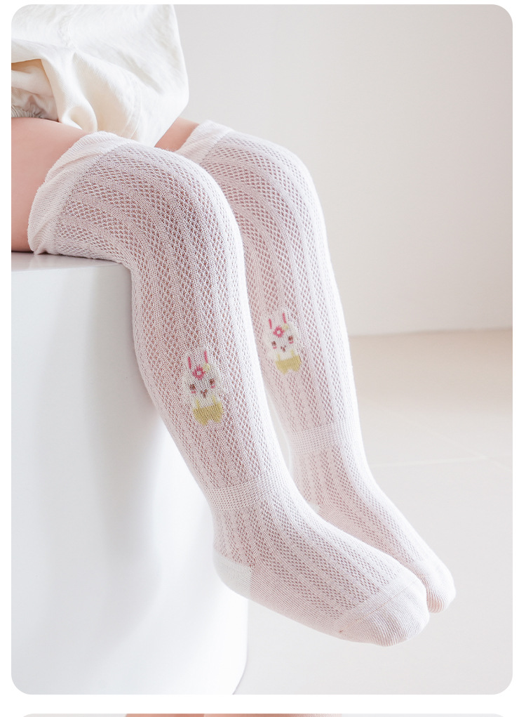 아기 스타킹 25 봄과 여름 얇은 만화 토끼 메쉬 통기성 아기 무릎 이상 양말 소녀 항균 높은 스타킹