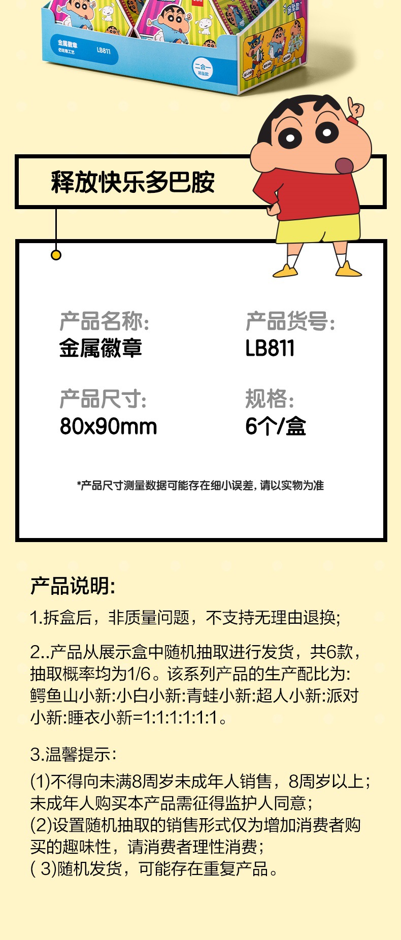 델리 LB811 크레용 작은 새로운 금속 배지 블라인드 박스 귀여운 브로치 가방 액세서리 6 무작위로 선택