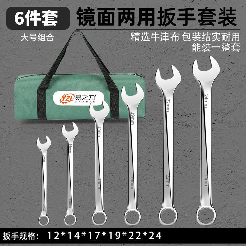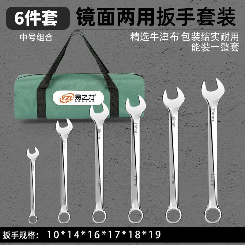 • [전기도금거울] 녹슬지 않는 매화 오픈 겸용 렌치 - 6종 세트 C 스타일 + 옥스포드 천 가방