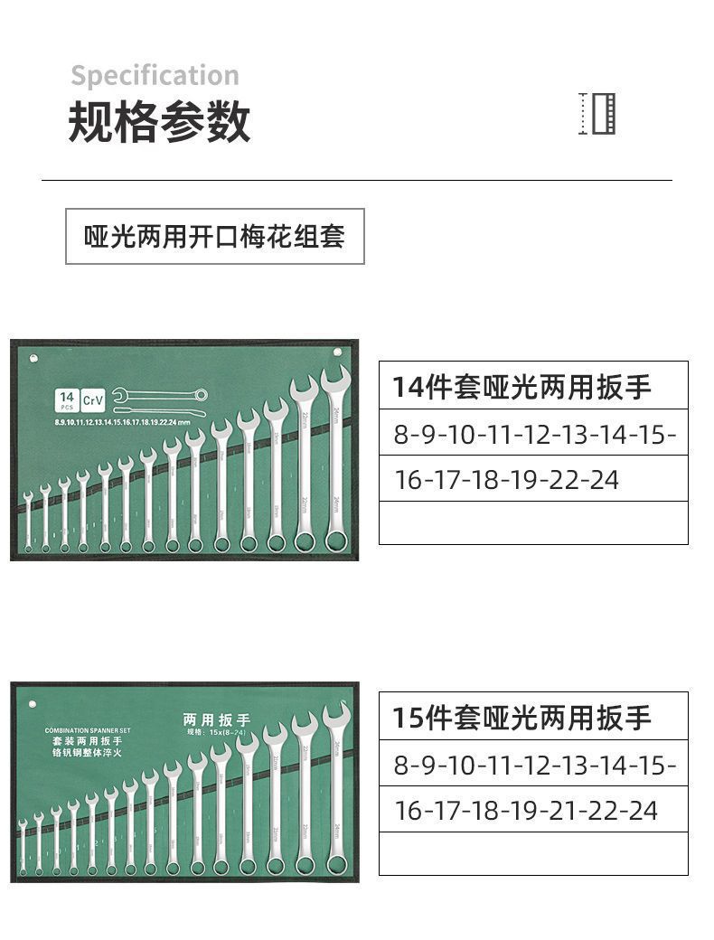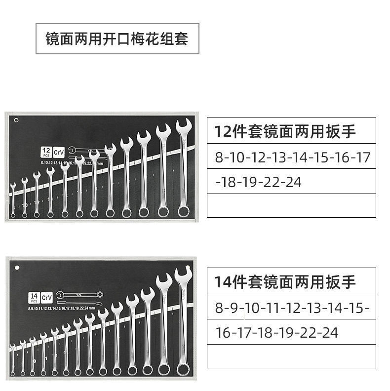 • [전기도금 무광] 녹슬지 않는 매화 오픈 겸용 렌치 - 5개 세트 [8-14]