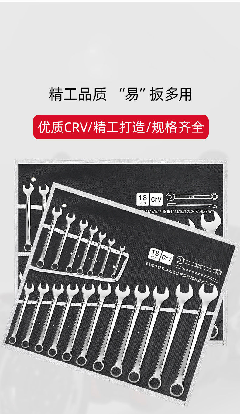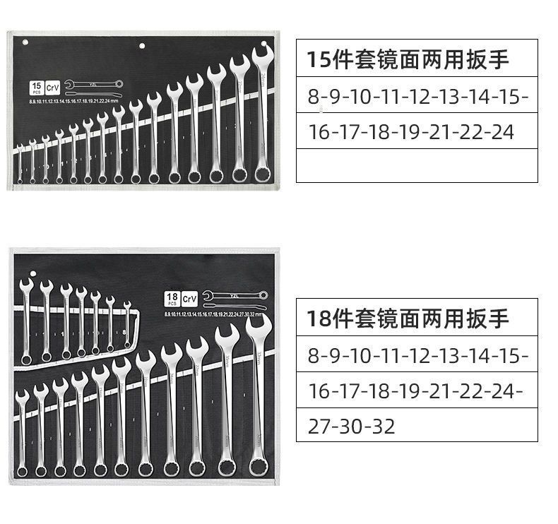 • [전기도금거울] 녹슬지 않는 매화오픈 겸용 렌치 - 일반적으로 사용되는 10종세트 + 옥스퍼드천