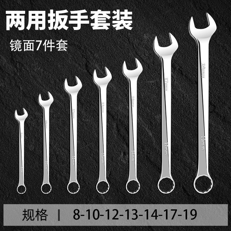 • [전기도금 무광] 녹슬지 않는 매화 오픈 겸용 렌치-7개 세트[8-19]