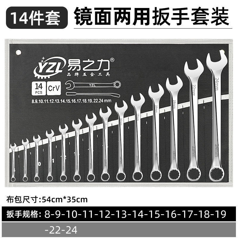 • [전기도금거울] 녹방지 매화오픈 겸용 렌치 - 전문가용 14종세트 + 옥스퍼드천