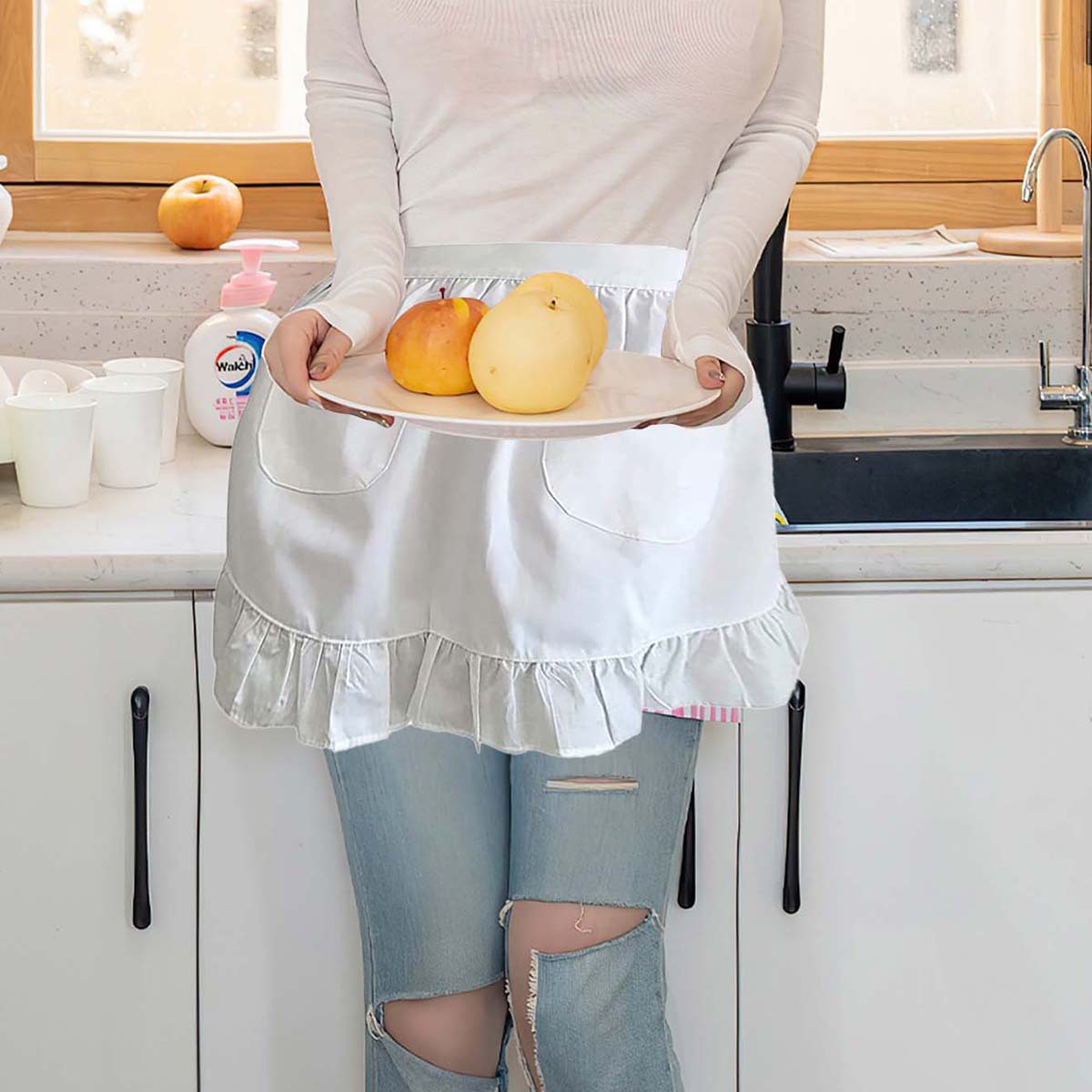 새로운 스타일 화이트 스커트 앞치마 연꽃 잎 레이스 메이드 원피스 홈 하프 프린세스 원피스 유럽 스타일 크로스 국경 독점스토어 가기