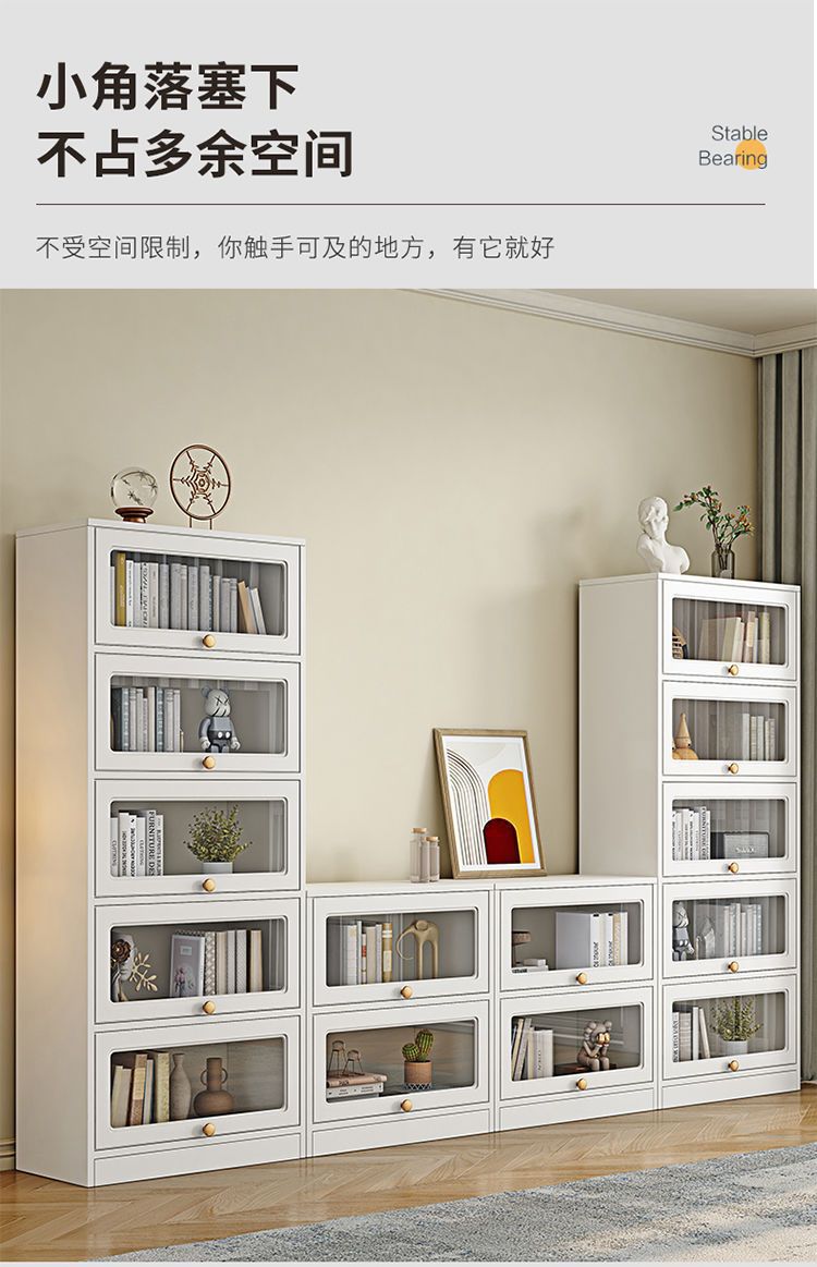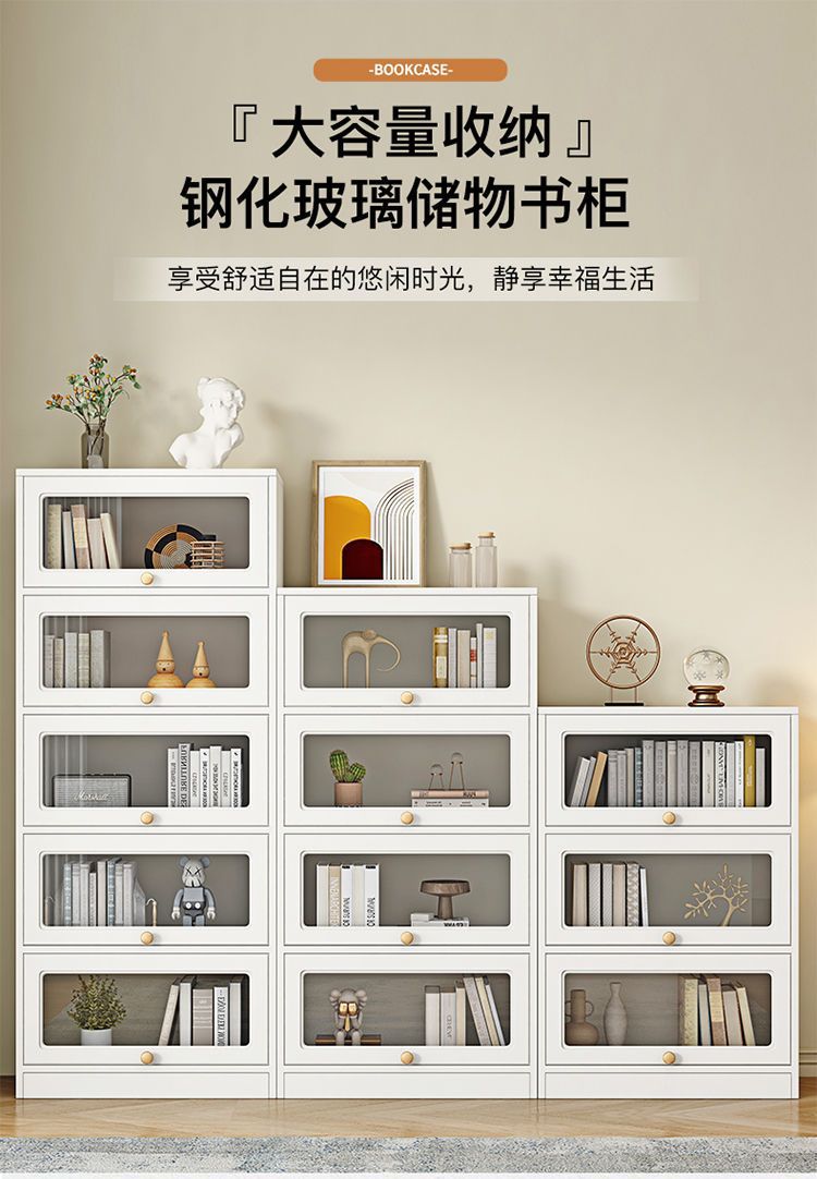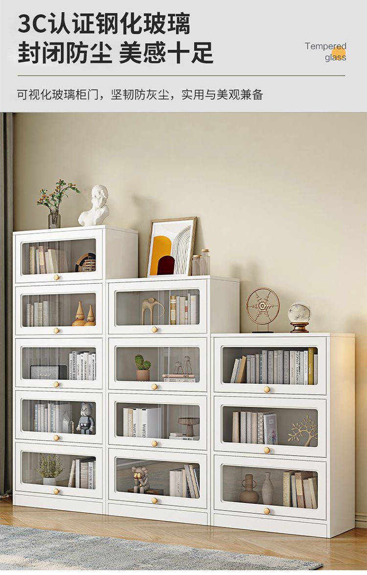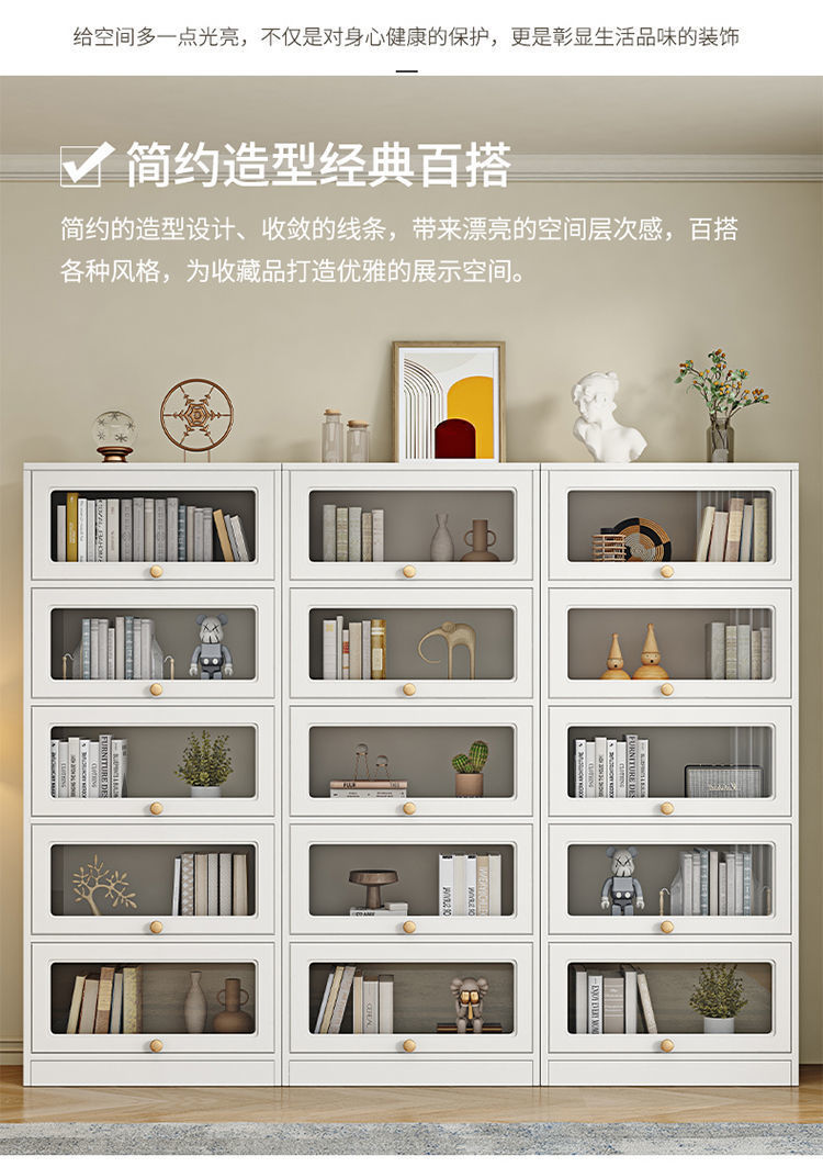 단단한 나무 책장 현대 간단한 방진 보관 캐비닛 유리 문 홈 거실 통합 전체 벽 빛 고급 책장스토어 가기