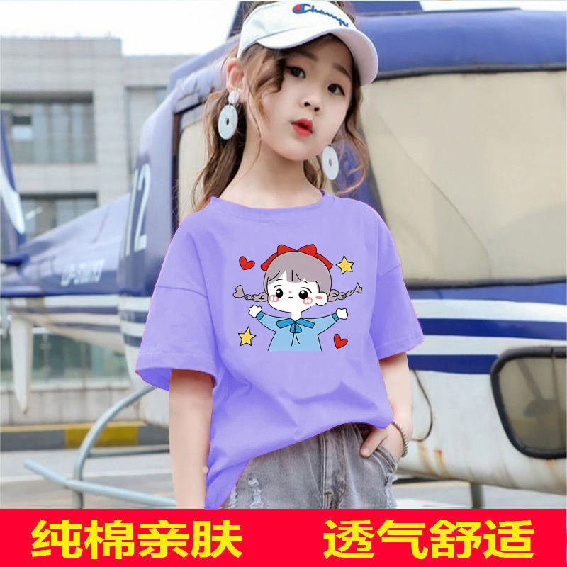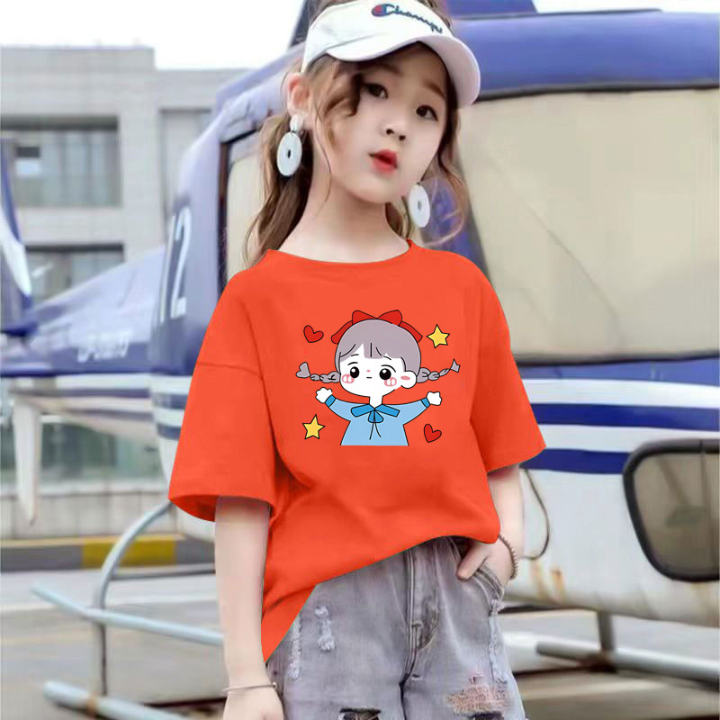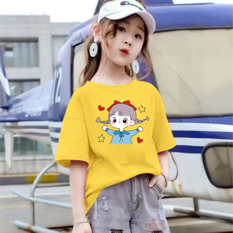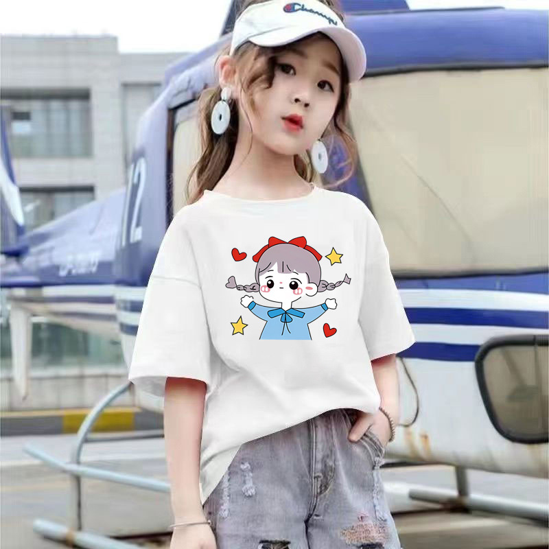 2109 #100% 면 여름 소녀 반팔 티셔츠 어린이 새 탑 느슨한 여름 착용 유행 아동복스토어 가기