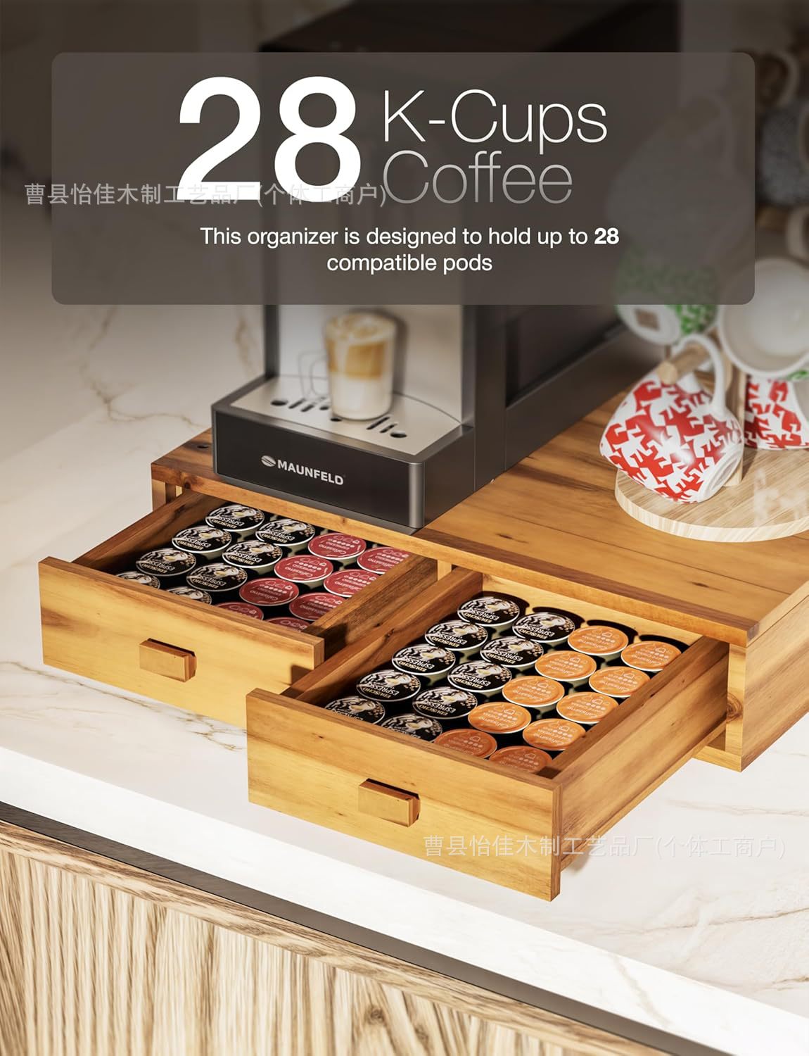 나무 커피 가방 저장 상자 커피 포드 및 차 보관 랙 서랍 커피 기계 홀더 커피 캡슐 상자스토어 가기