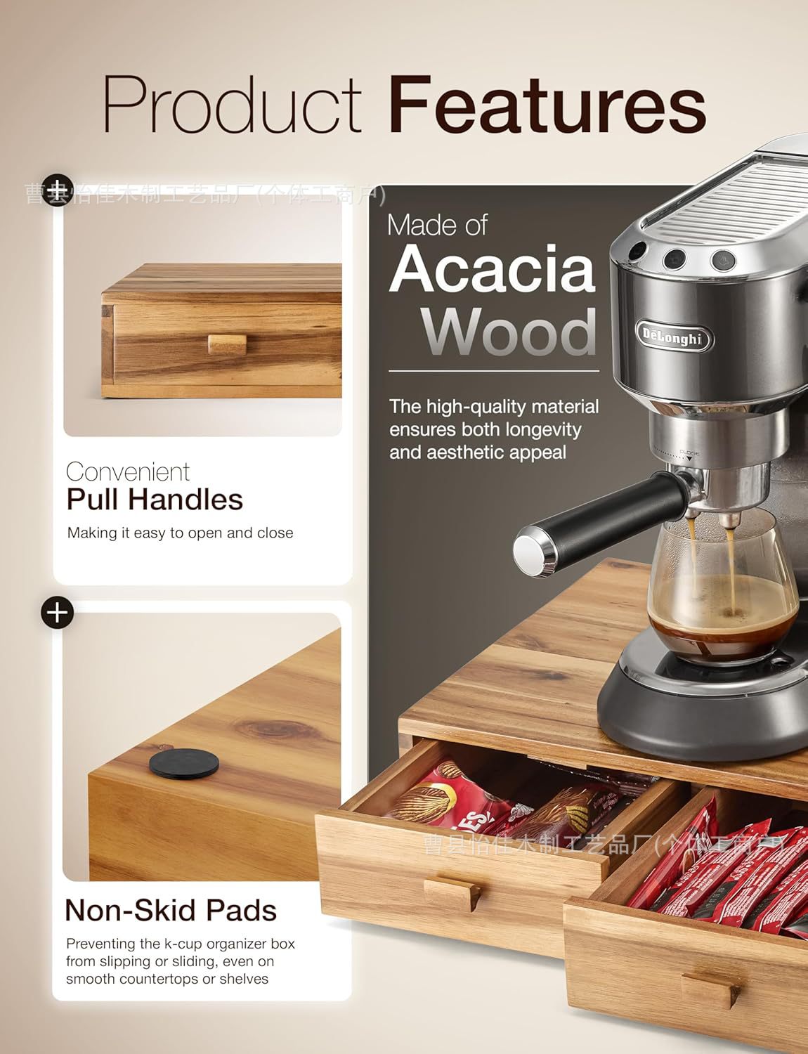 나무 커피 가방 저장 상자 커피 포드 및 차 보관 랙 서랍 커피 기계 홀더 커피 캡슐 상자