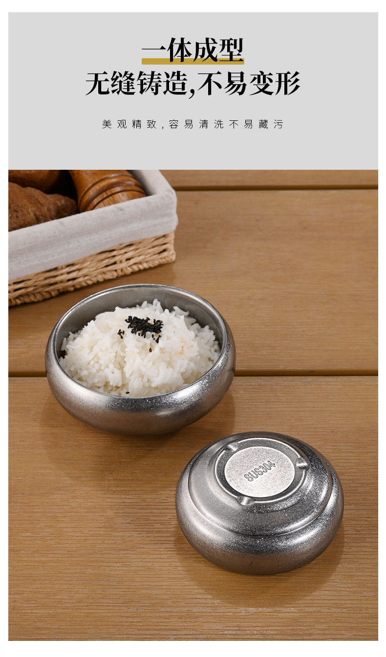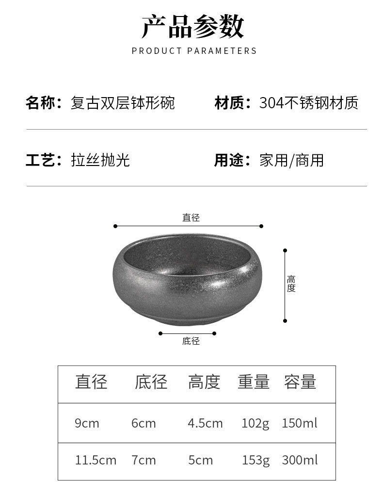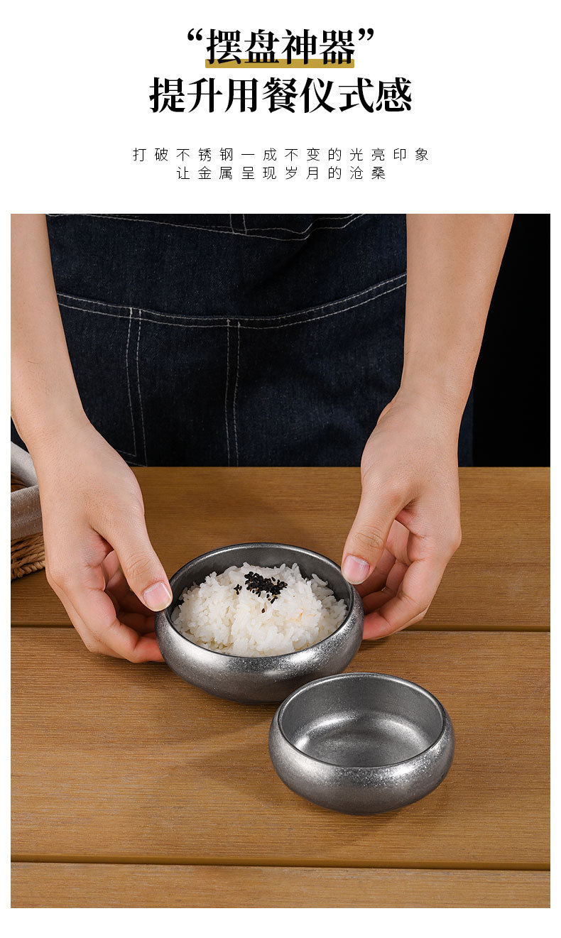빈티지 304 스테인레스 스틸 크리 에이 티브 볼 더블 두꺼운 상업용 레스토랑 소스 그릇 열 절연 쌀 그릇 수프 그릇