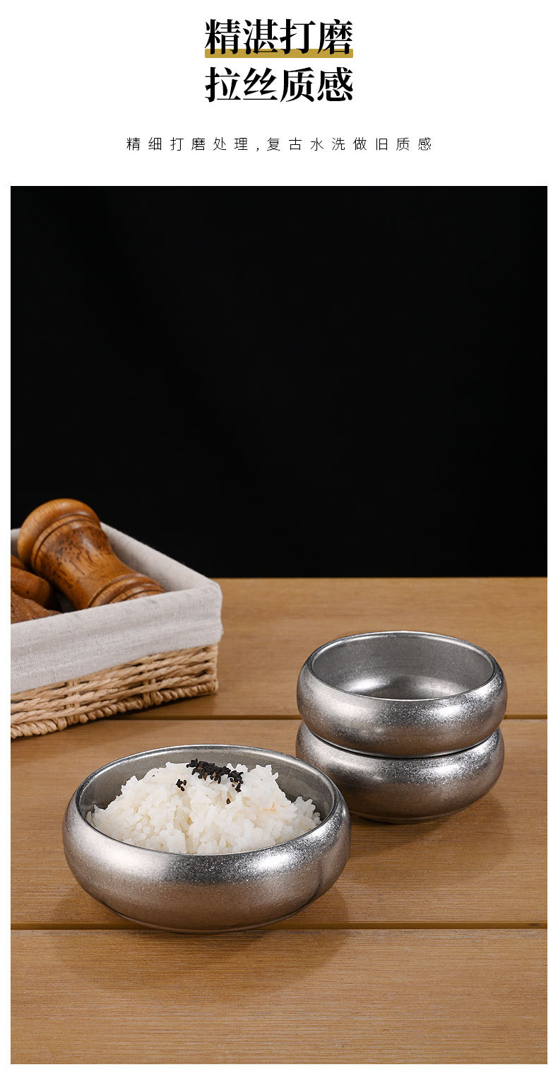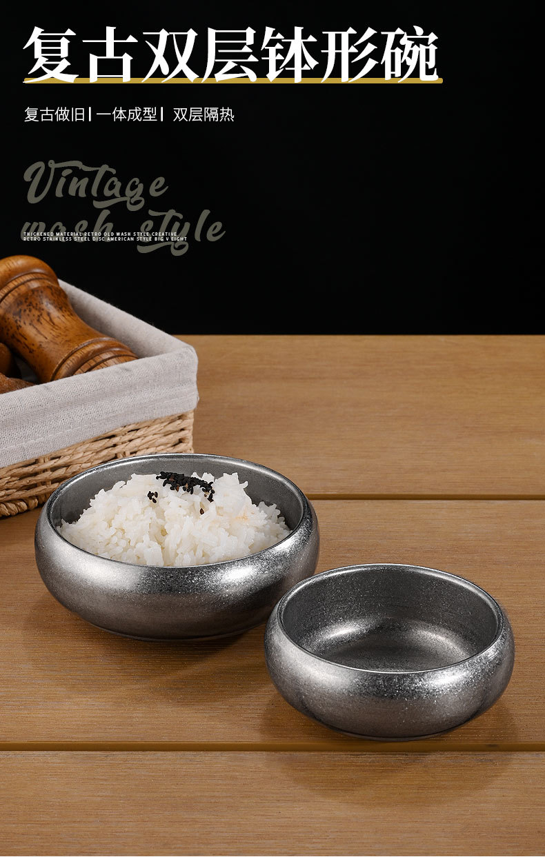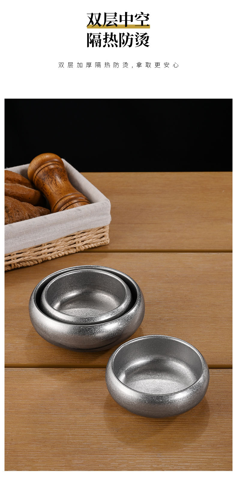빈티지 304 스테인레스 스틸 크리 에이 티브 볼 더블 두꺼운 상업용 레스토랑 소스 그릇 열 절연 쌀 그릇 수프 그릇스토어 가기