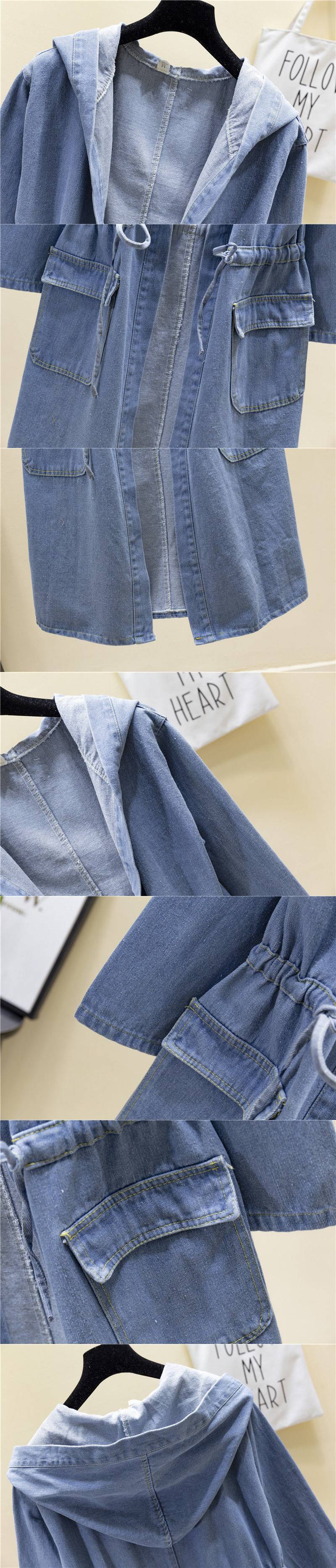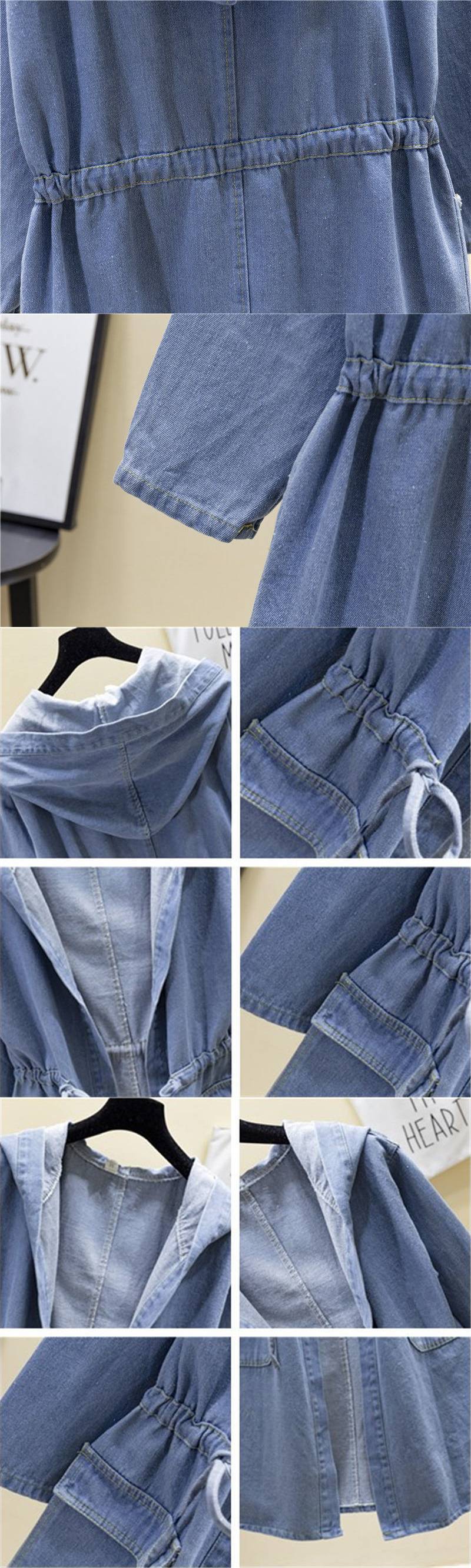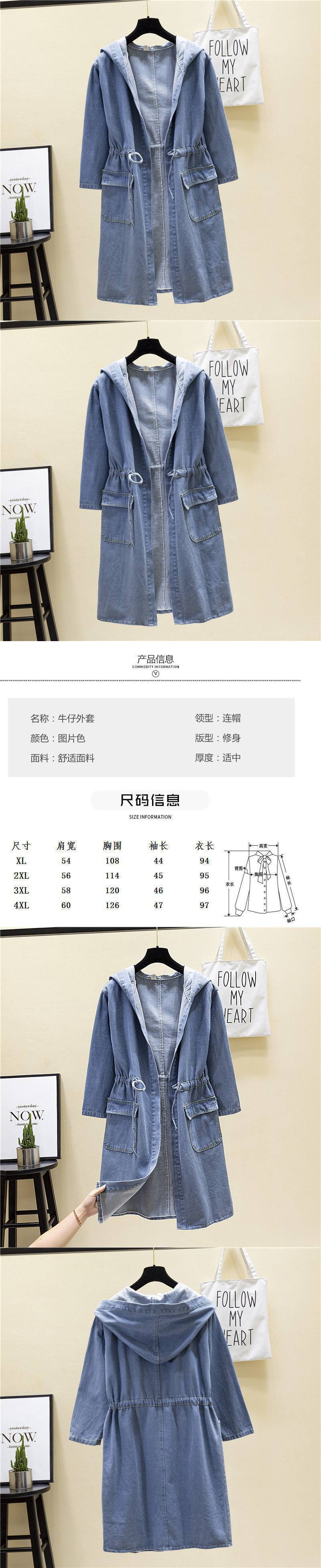 느슨한 끈 슬리밍 트렌치 코트 중간 길이의 봄 플러스 사이즈 캐주얼 올 매치 재킷 큰 포켓 후드 데님 옷스토어 가기
