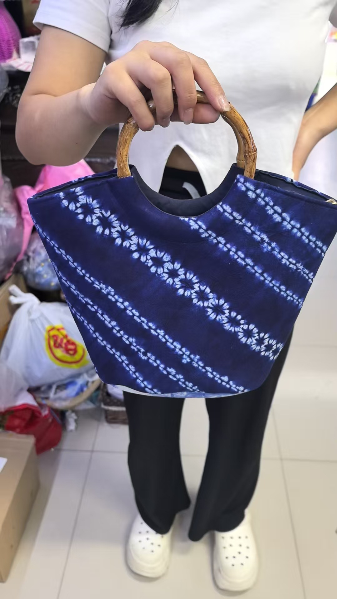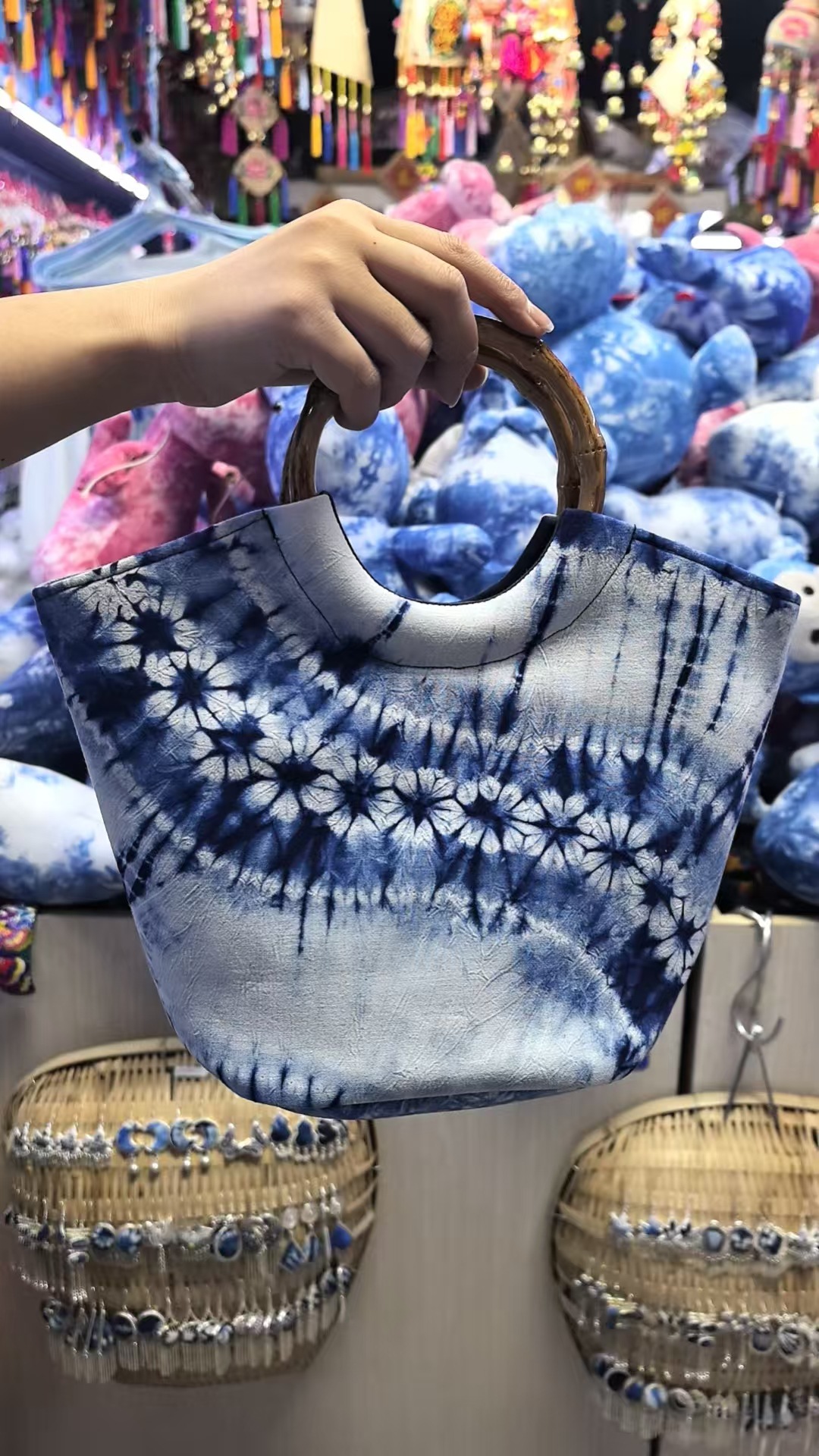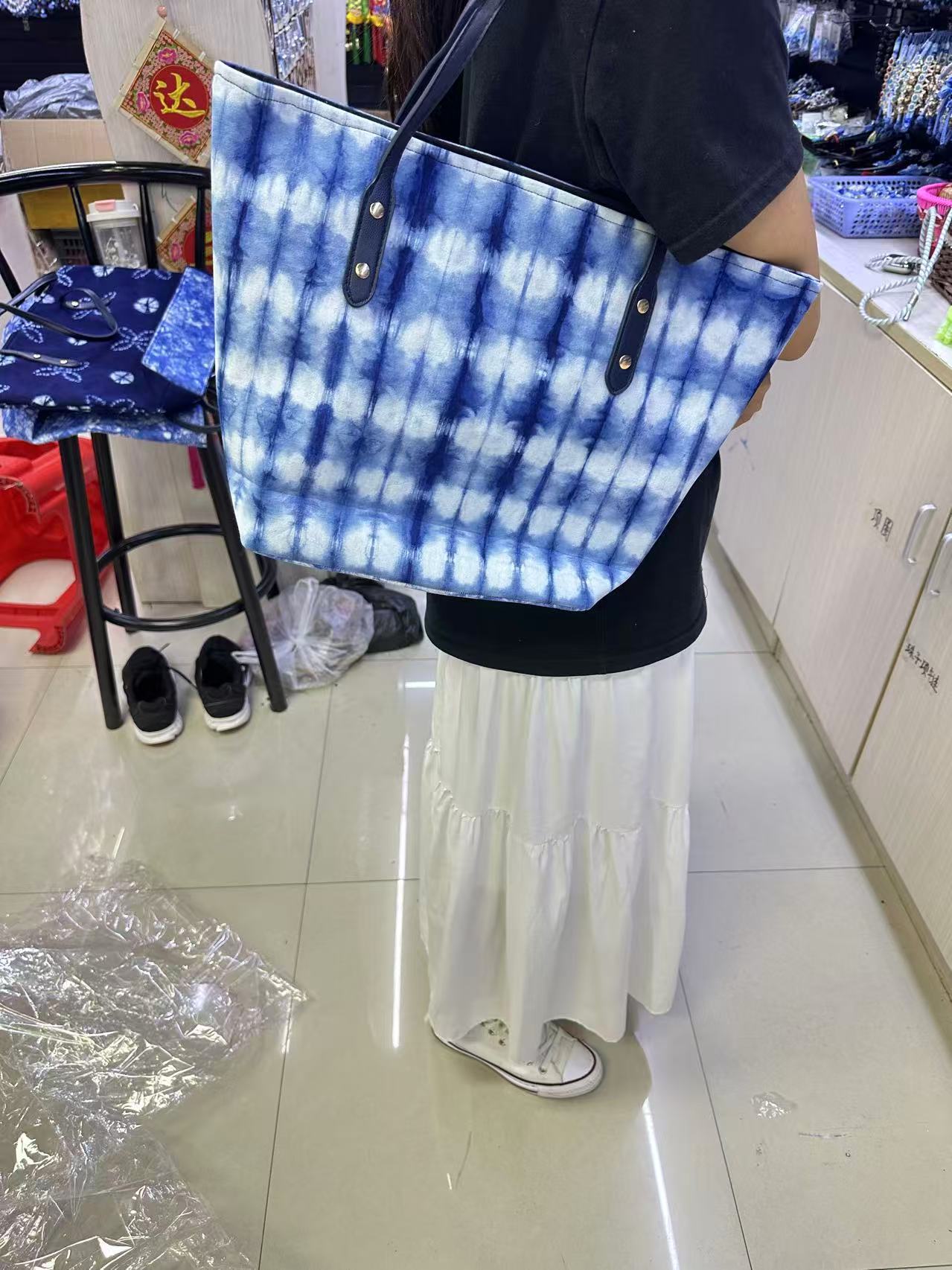 민족 스타일 블루 다이 숄더 백 예술적 수제 패션 가방 운남 레트로 블루와 화이트 도자기 다꽃 원피스스토어 가기