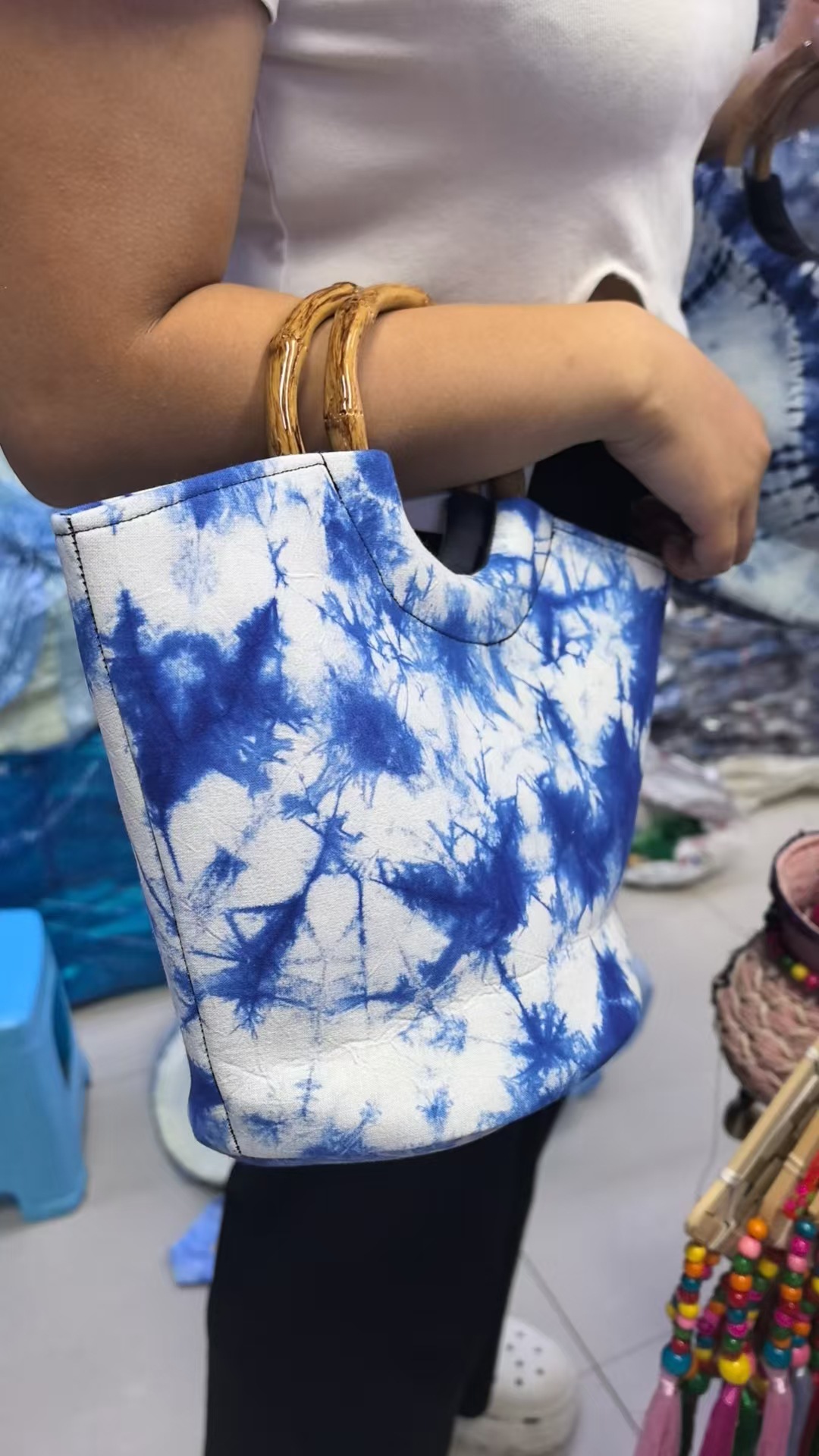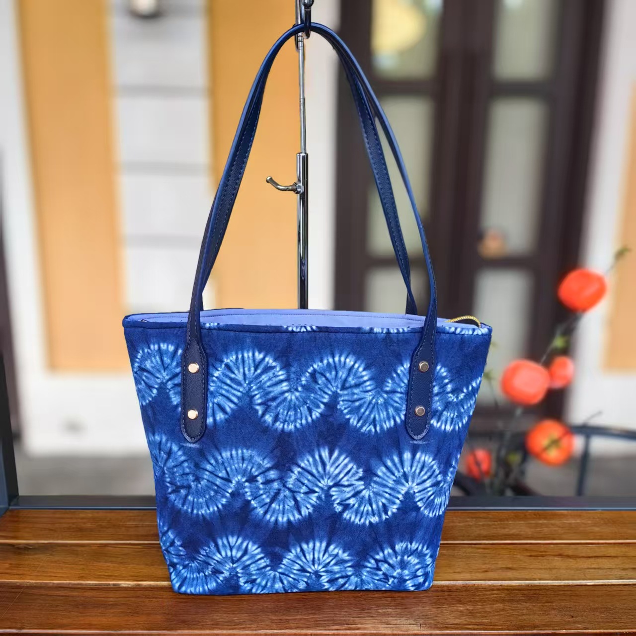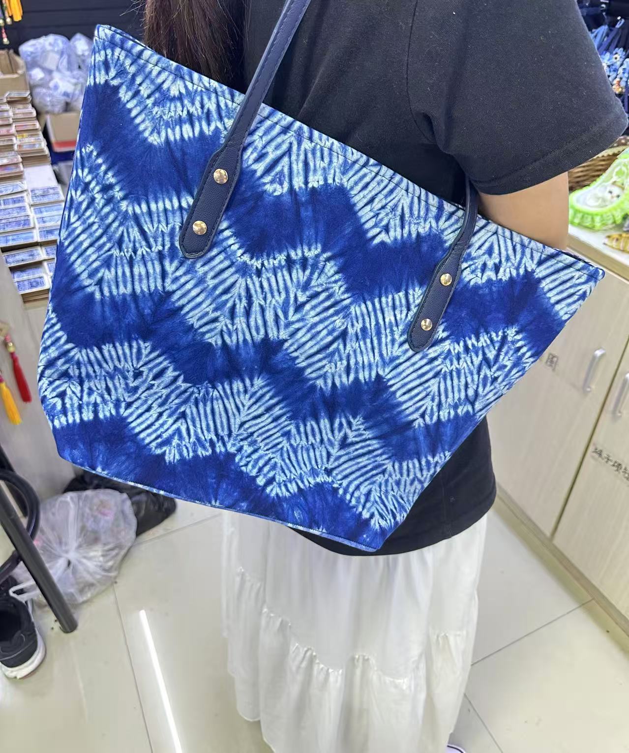 민족 스타일 블루 다이 숄더 백 예술적 수제 패션 가방 운남 레트로 블루와 화이트 도자기 다꽃 원피스