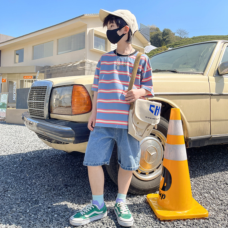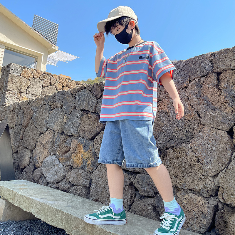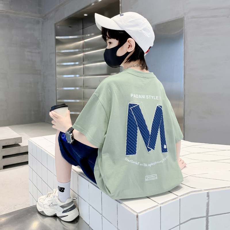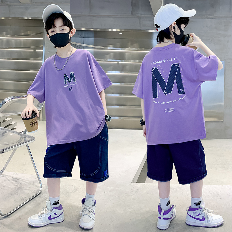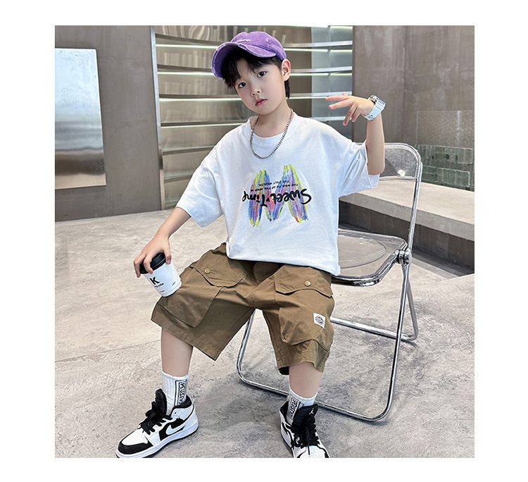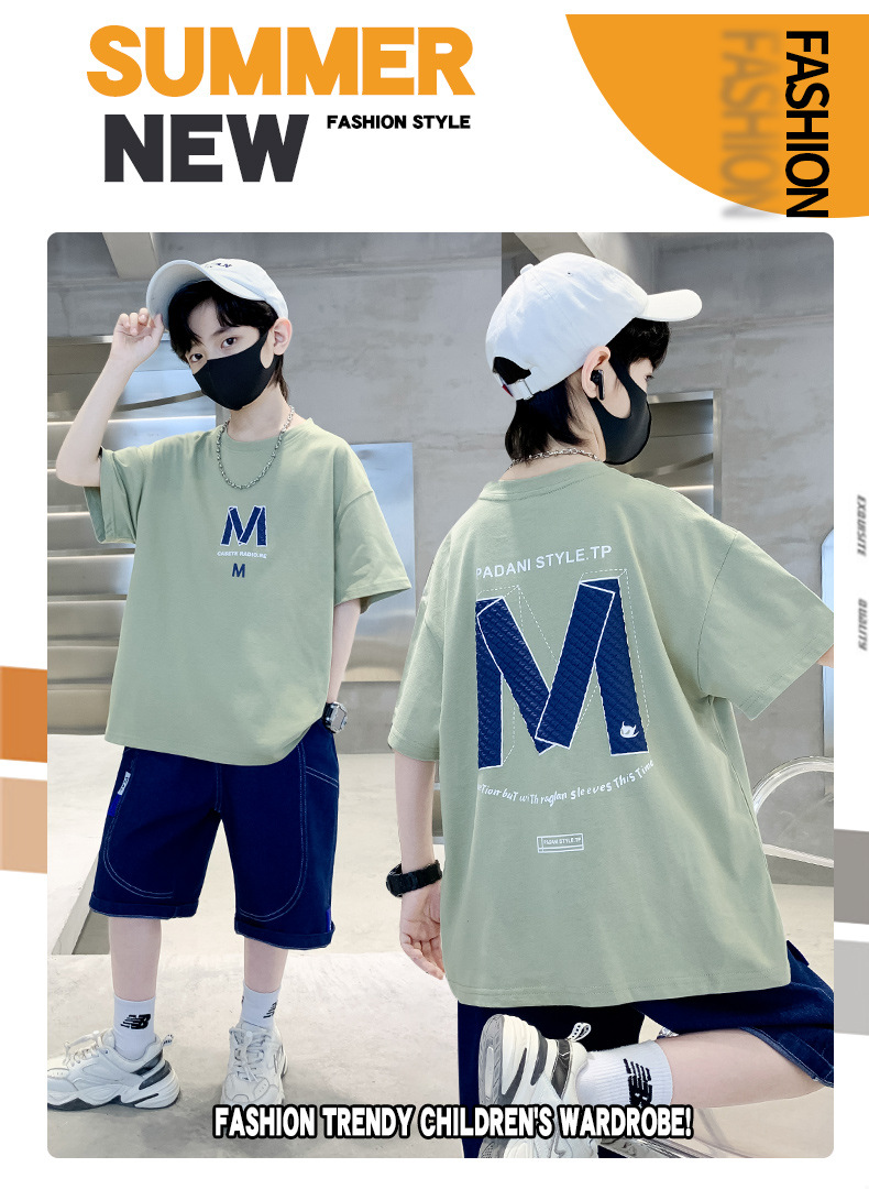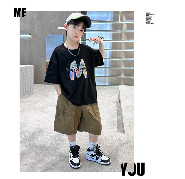 소년 여름 세트 2025 새로운 여름 옷 어린이 반팔 티셔츠 유행 티셔츠 아동복스토어 가기