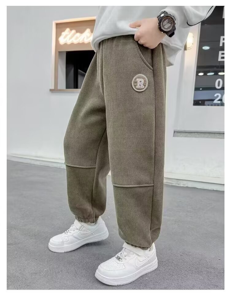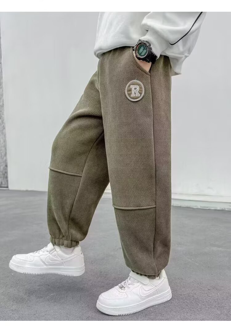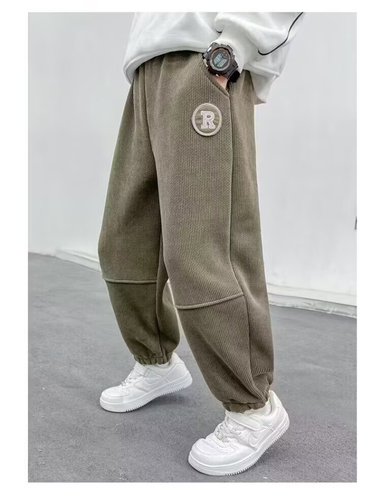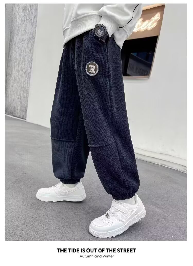소년의 봄과 가을 스포츠 바지 2025 새로운 코듀로이 어린이 스웨트 팬츠 중 큰 어린이 다리 번들 캐주얼 외복 바지