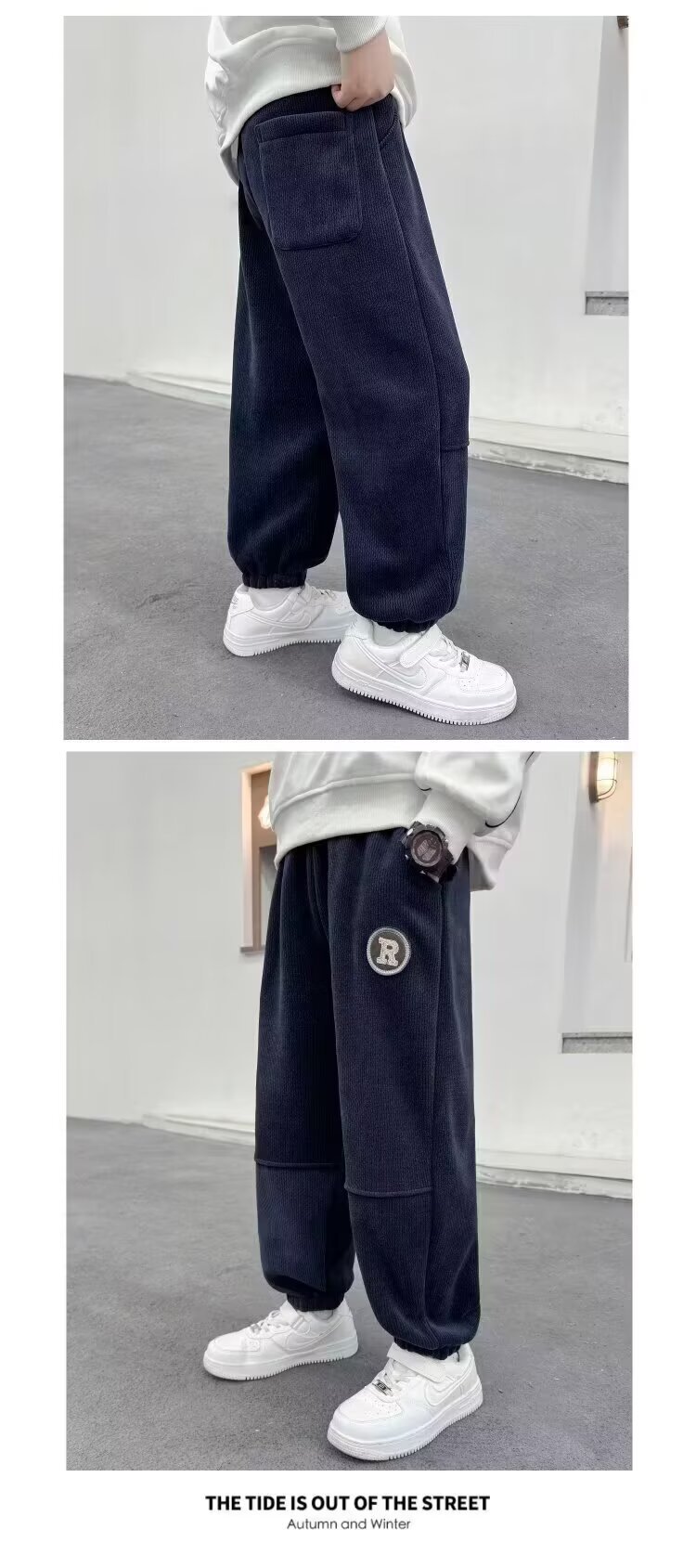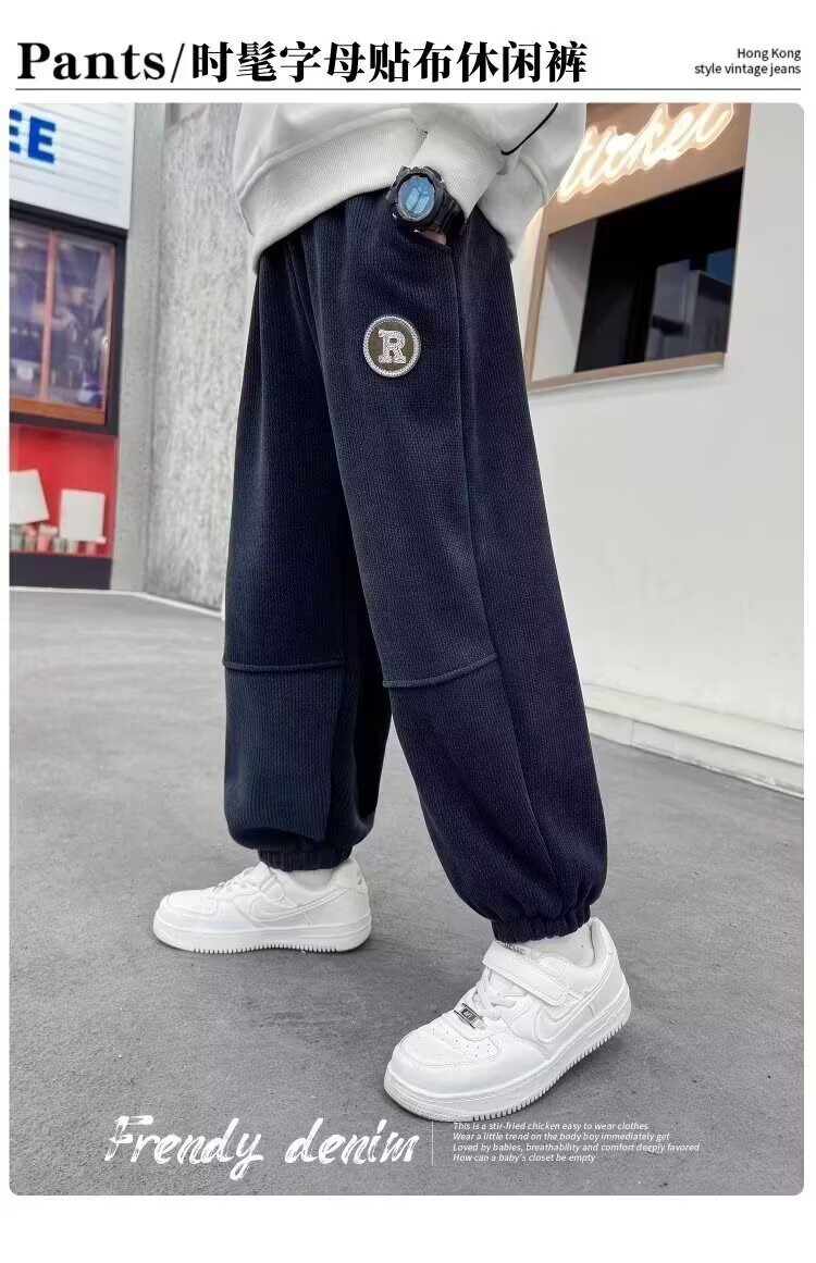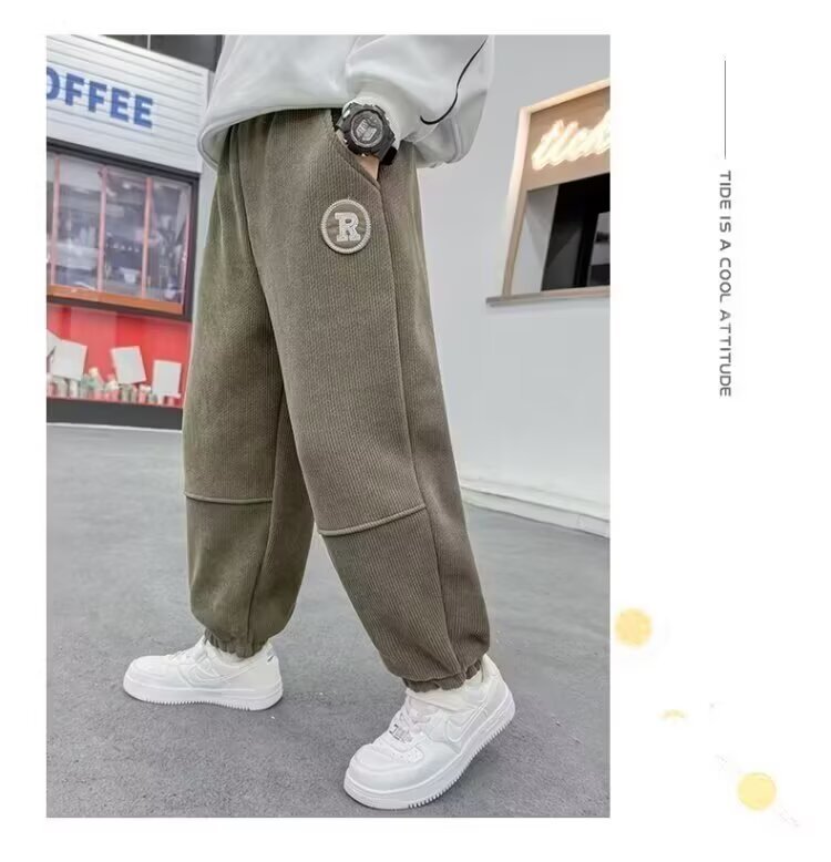 소년의 봄과 가을 스포츠 바지 2025 새로운 코듀로이 어린이 스웨트 팬츠 중 큰 어린이 다리 번들 캐주얼 외복 바지스토어 가기