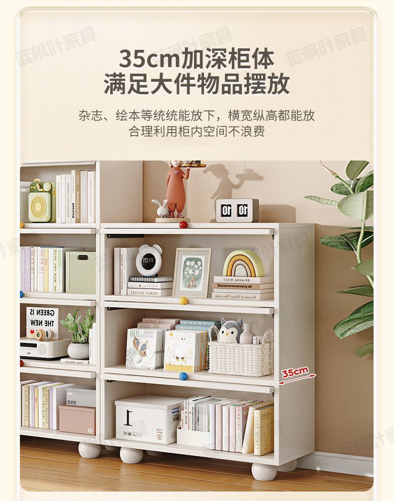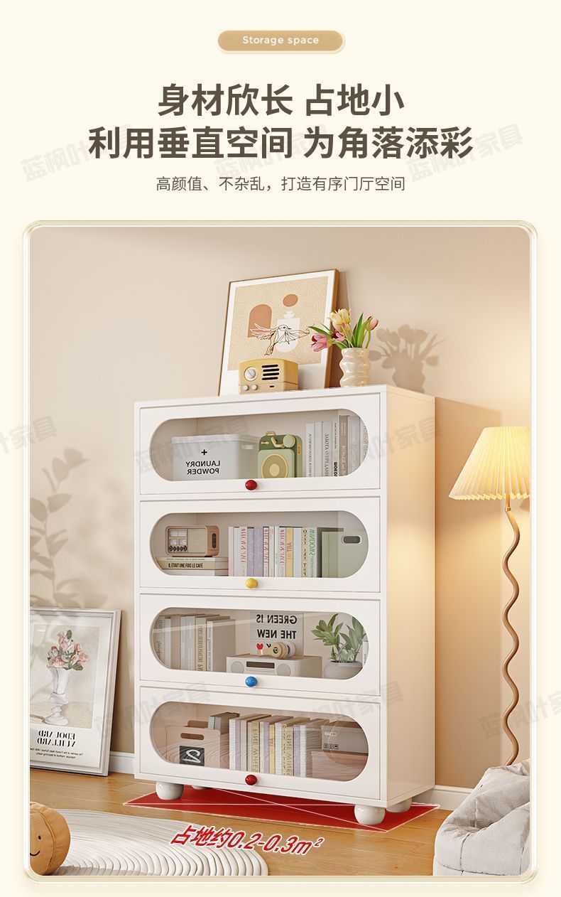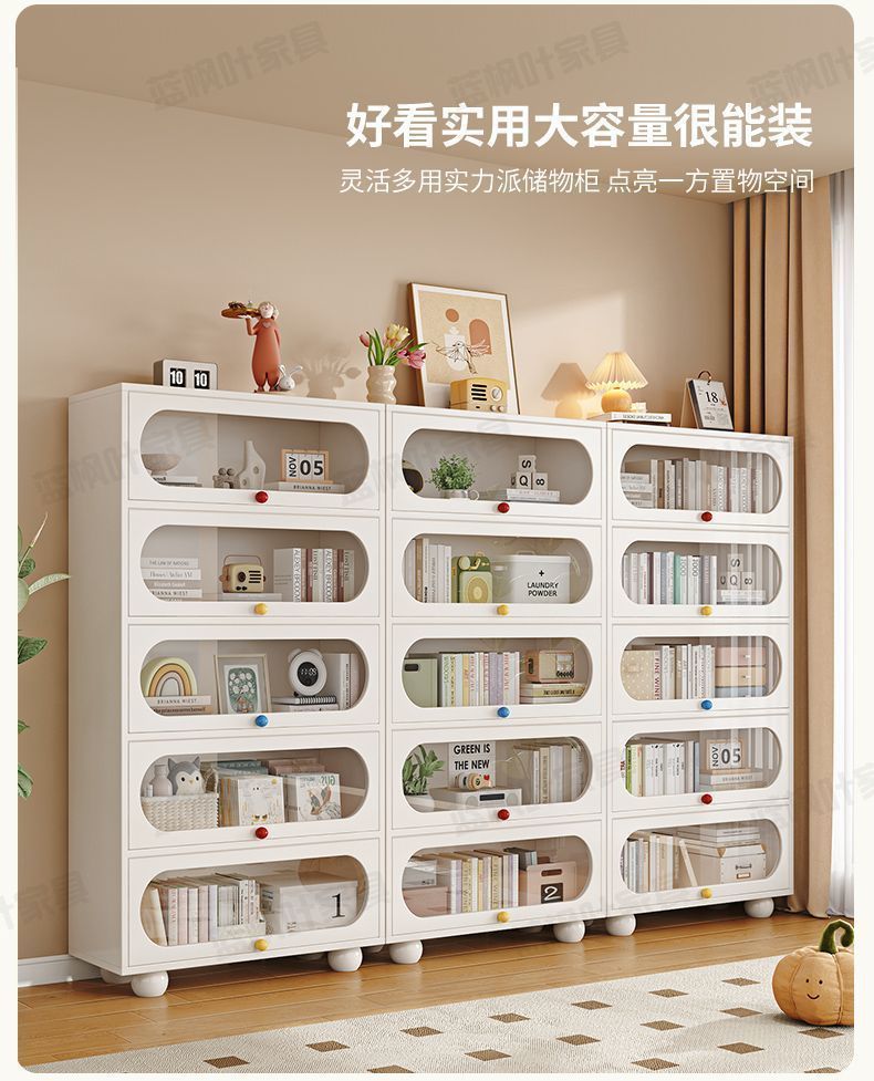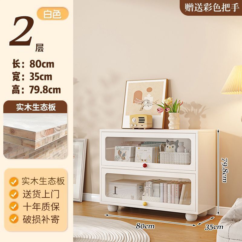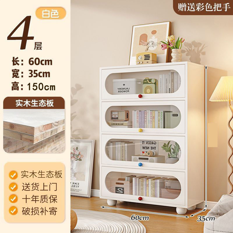 단단한 나무 책장 바닥 저장 랙 유리 문 크림 스타일 책장 방진 저장 캐비닛 서브 조합 거실 가구스토어 가기