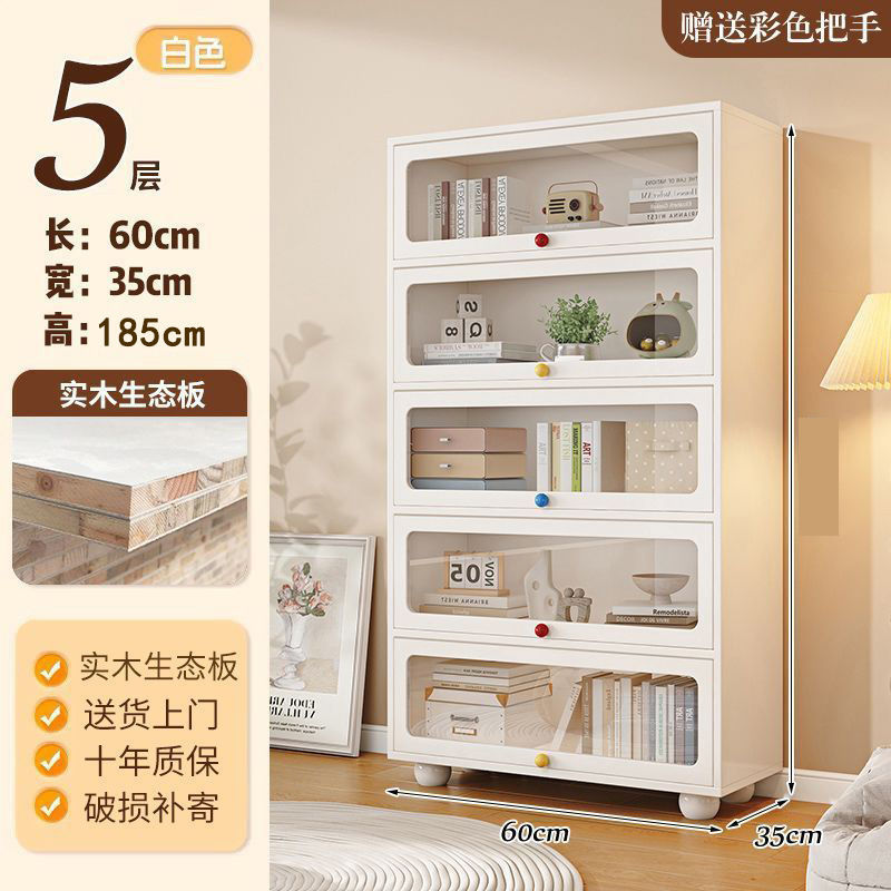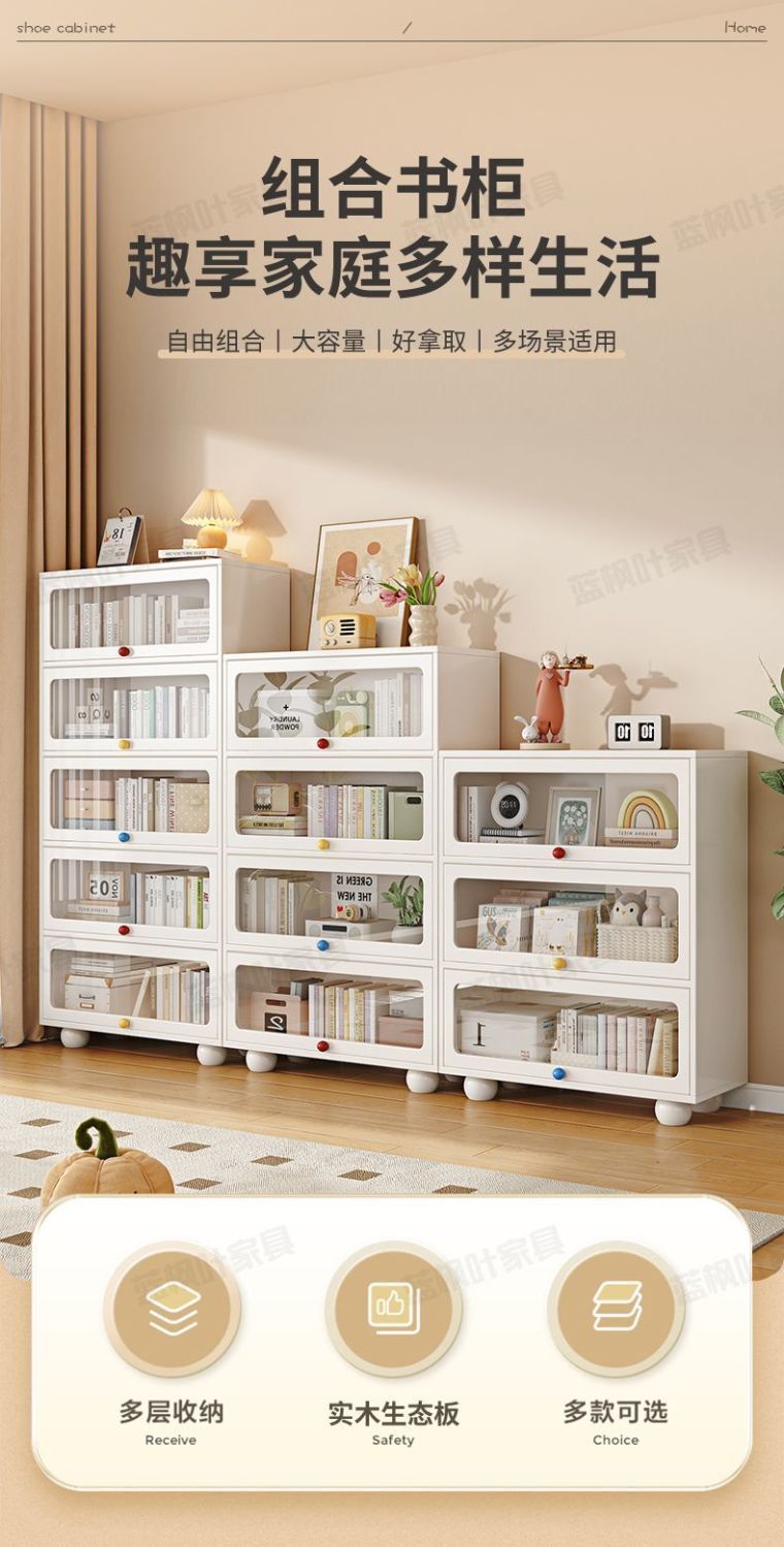 단단한 나무 책장 바닥 저장 랙 유리 문 크림 스타일 책장 방진 저장 캐비닛 서브 조합 거실 가구