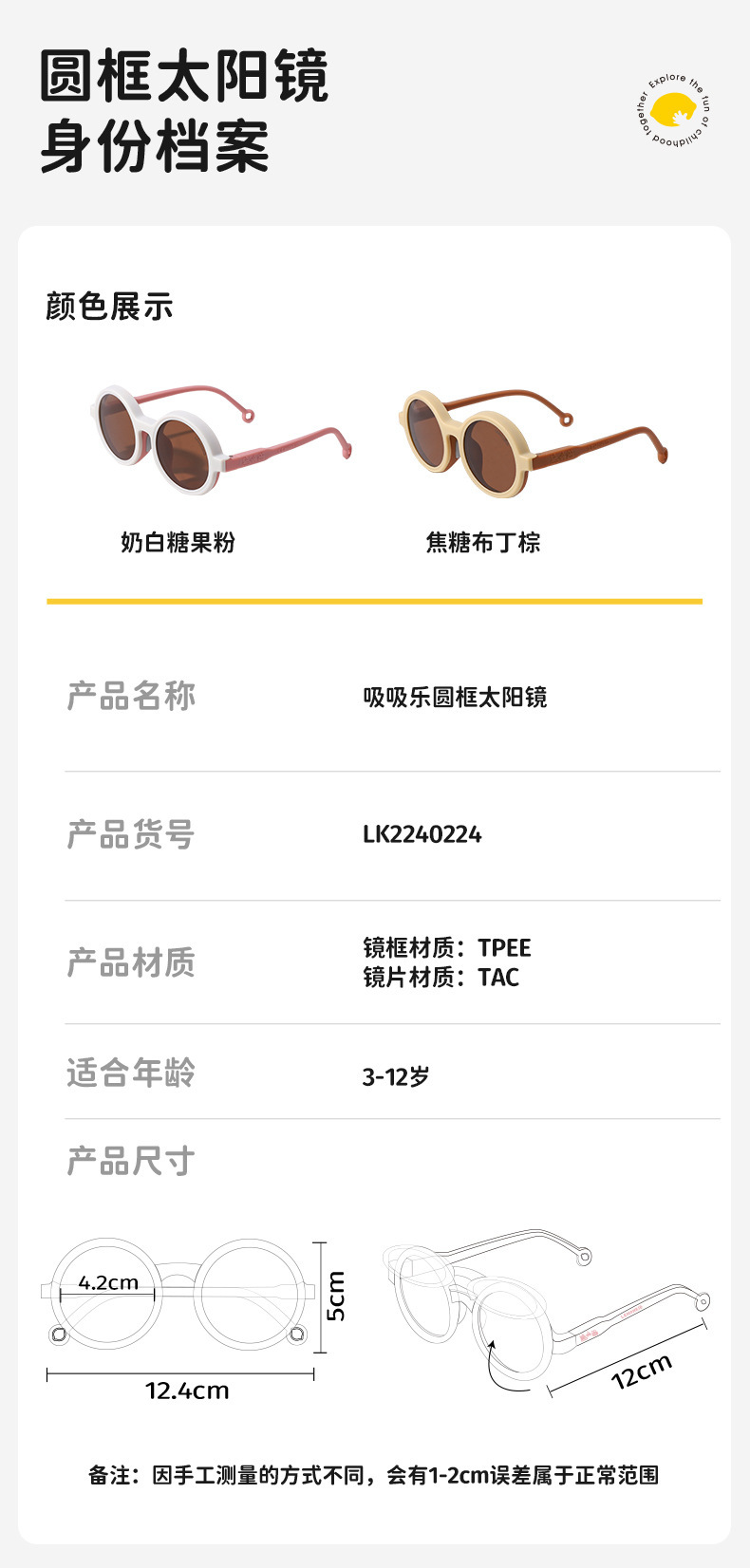 [깨진 컬러 픽업 가격] 레몬 베이비 라운드 프레임 접이식 선글라스 어린이 선글라스 소년 소녀 UV 보호스토어 가기