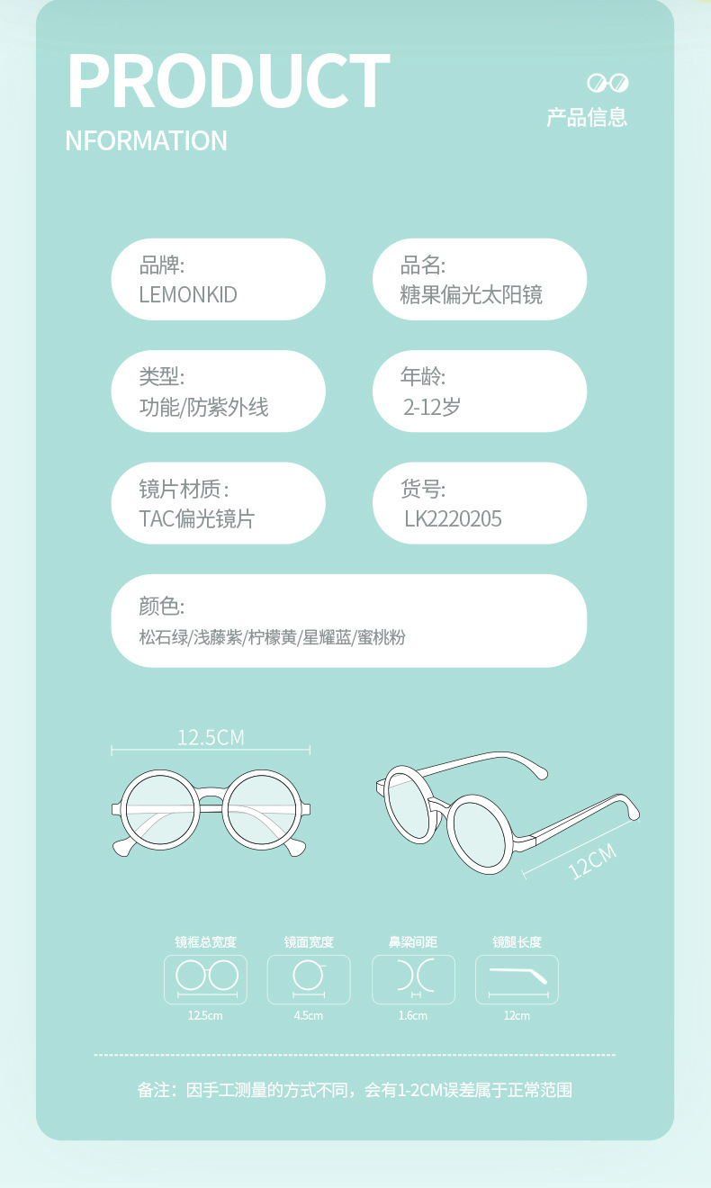 [깨진 컬러 픽업 가격] 레몬 베이비 라운드 프레임 접이식 선글라스 어린이 선글라스 소년 소녀 UV 보호