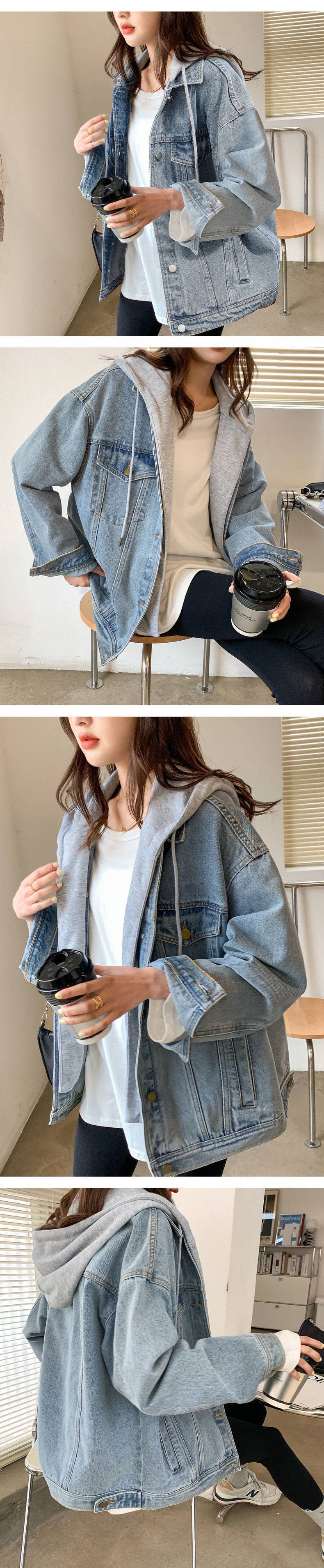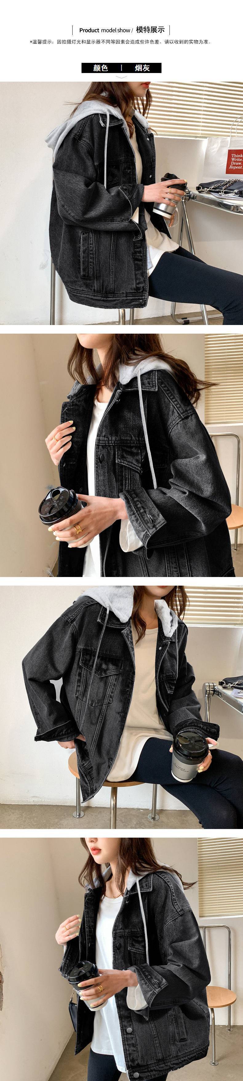 2025 새로운 봄 및 봄 레트로 후드 데님 재킷 여자 한국 스타일 느슨한 올 매치 솔트 롱 슬리브 탑 트렌디스토어 가기
