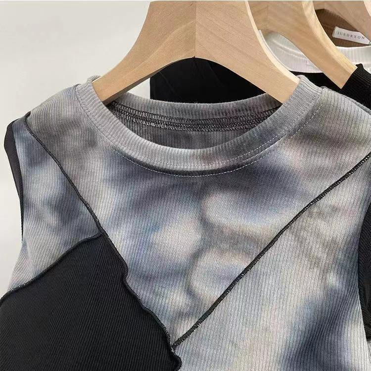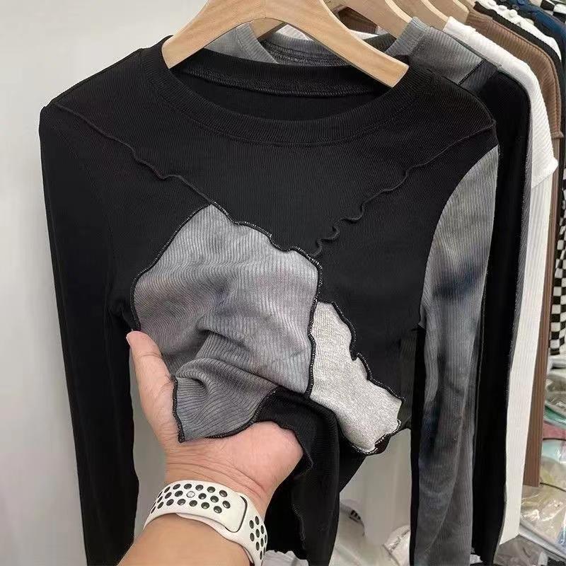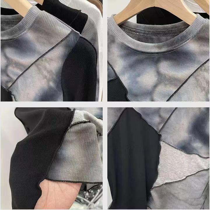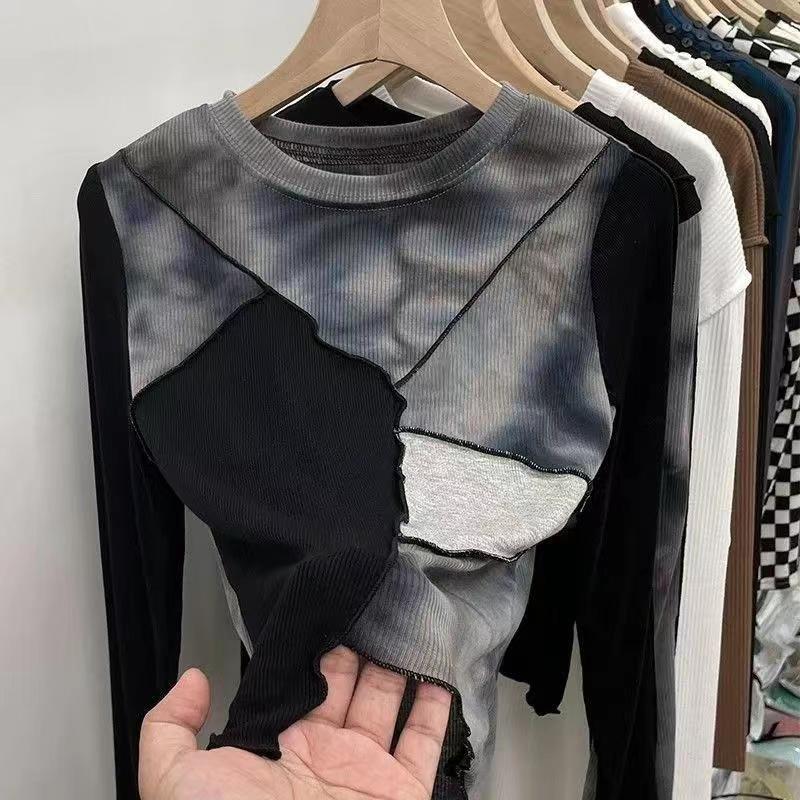 유럽 외국 스타일의 스레드 타이 염료 세련된 디자인 최고의 여성 가을과 겨울 새로운 긴팔 티셔츠 짧은 바닥 셔츠 트렌드스토어 가기