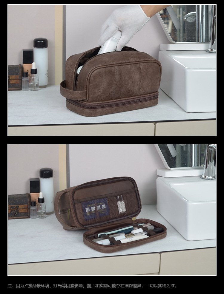 2025 새로운 레트로 방수 Pu 가죽 화장품 가방 유럽과 미국의 맞춤형 여행 워시 백 경량 휴대용 디자인 워시 백