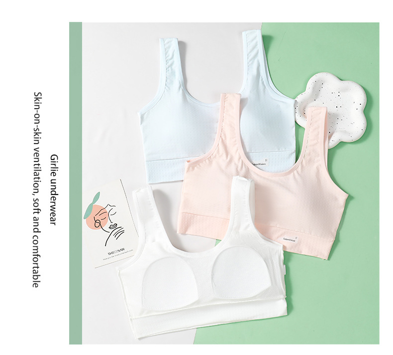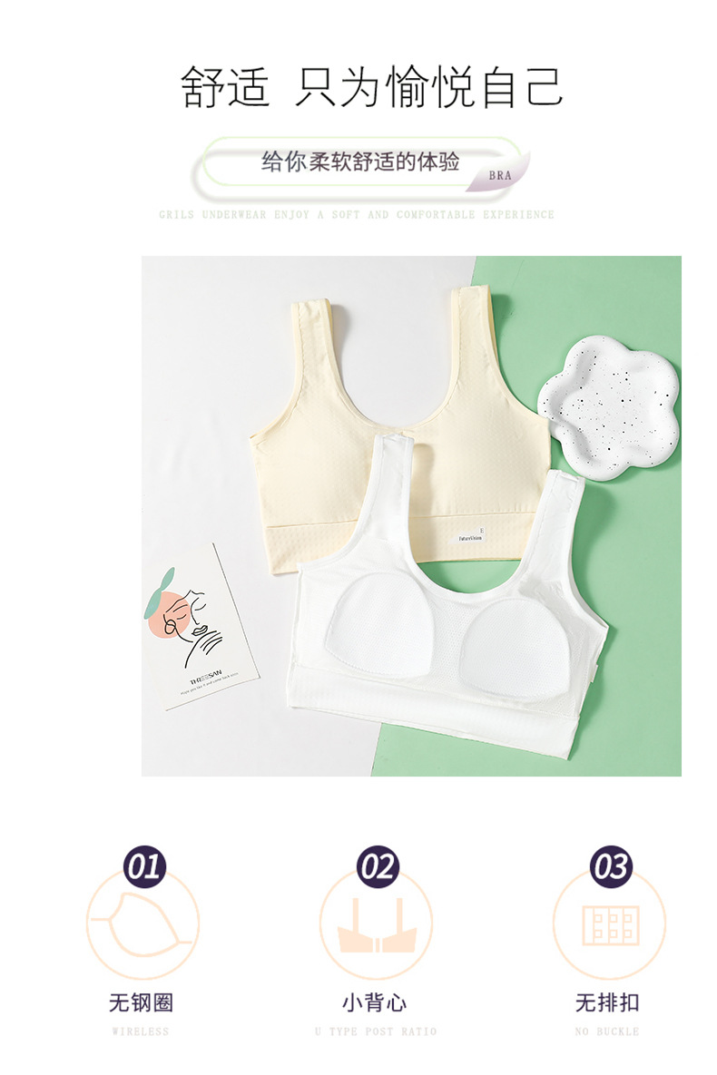 사춘기 학생 끈이없는 속옷 고정 컵 충격 방지 초기 고등학교 소녀 조끼 소녀 브래지어 강철 반지 없음스토어 가기