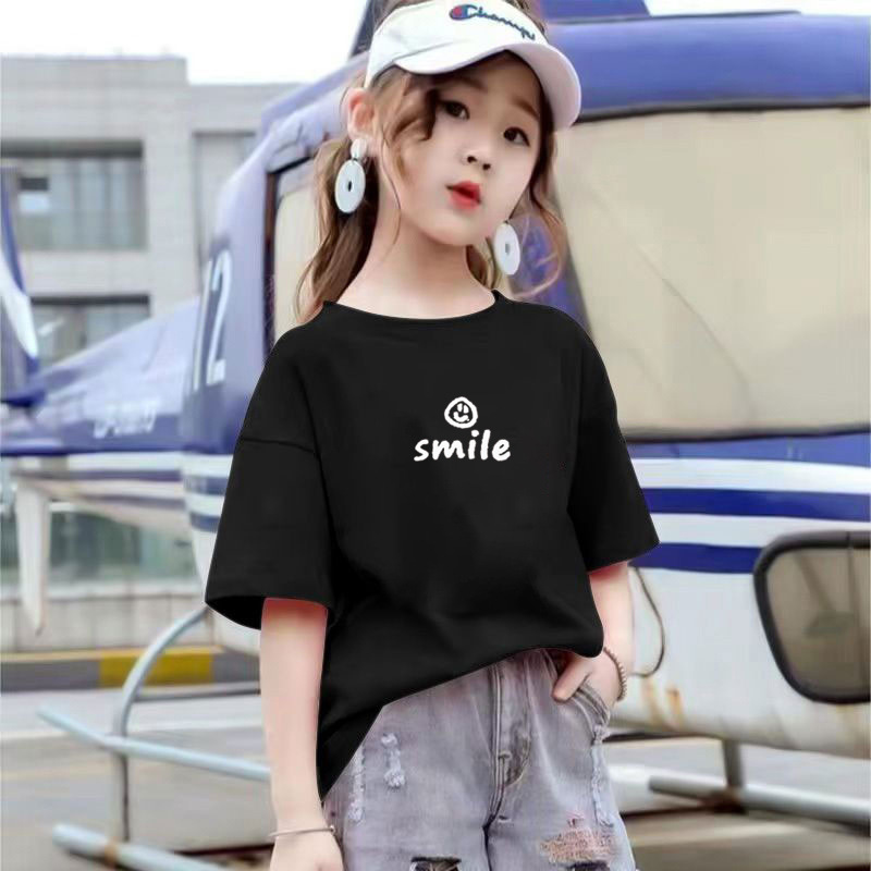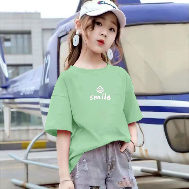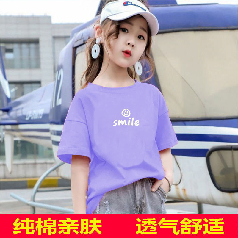 2143 # 어린이 여자 반소매 티셔츠 2025 여름 신축 면 느슨한 중대형 아동복 반소매 유행 옷