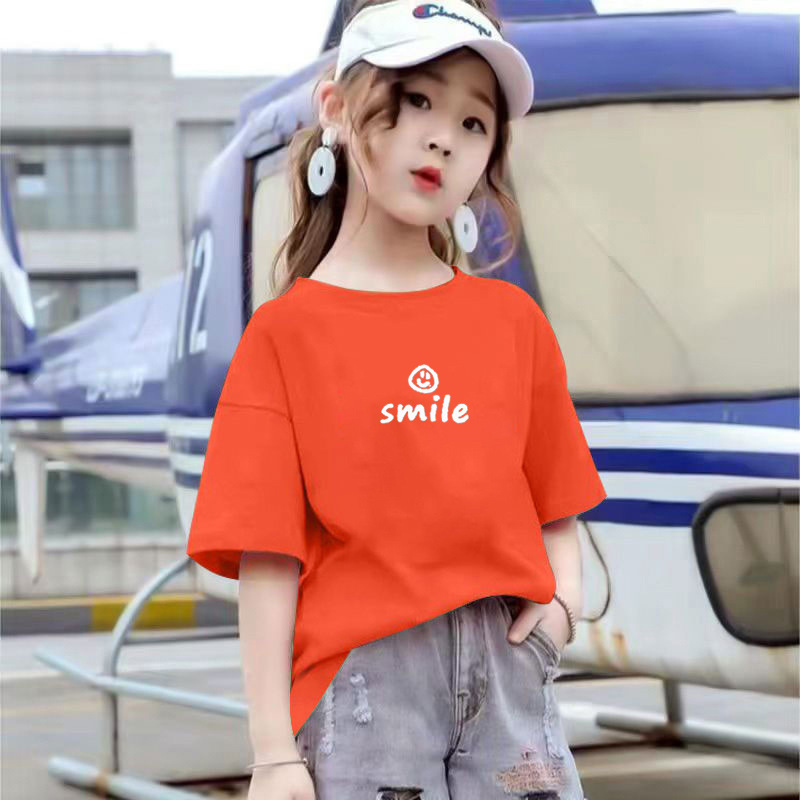 2143 # 어린이 여자 반소매 티셔츠 2025 여름 신축 면 느슨한 중대형 아동복 반소매 유행 옷스토어 가기