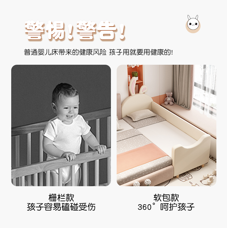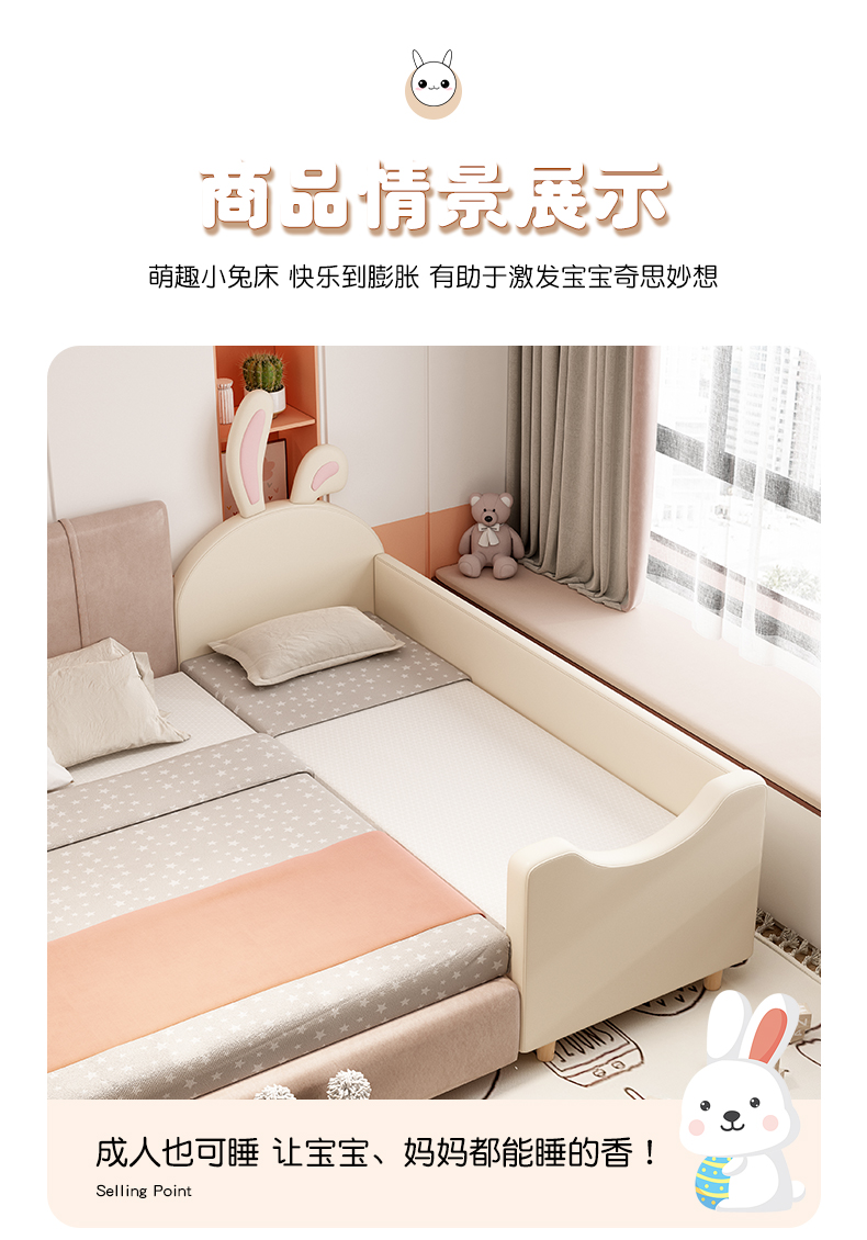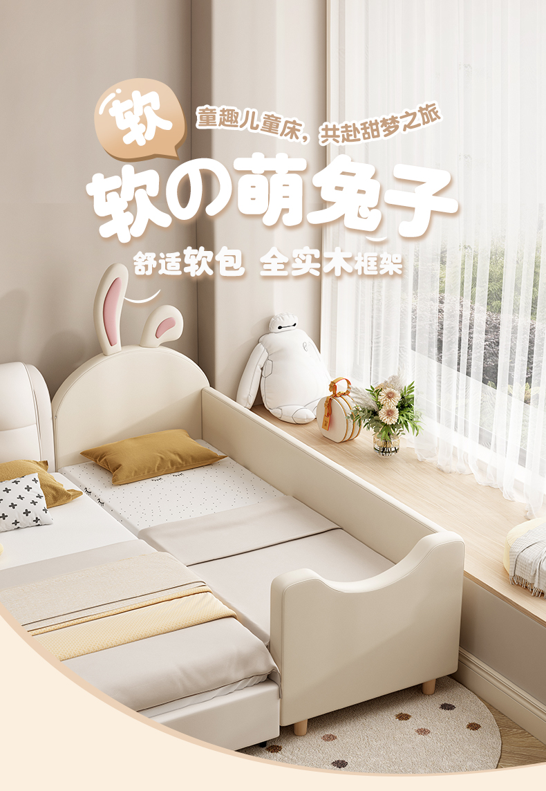 J & Soft Bag 어린이 접합 침대 유아용 침대 침대 침대와 가드 레일을 결합한 큰 침대 침대 소년 소녀 용 침대 침대스토어 가기