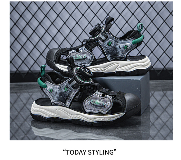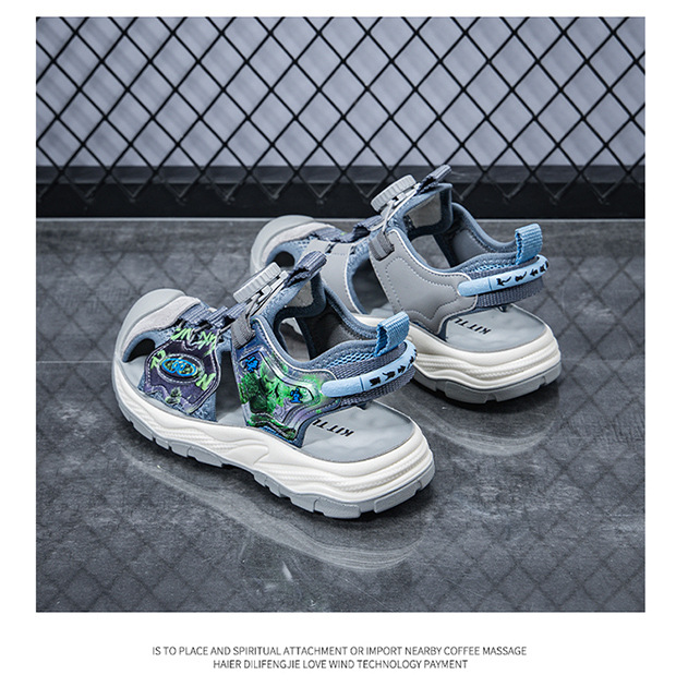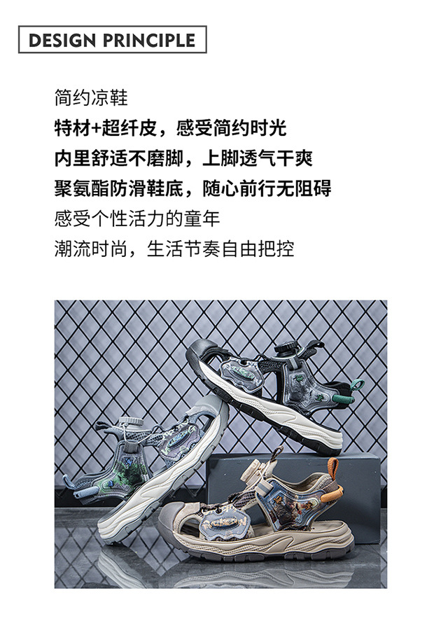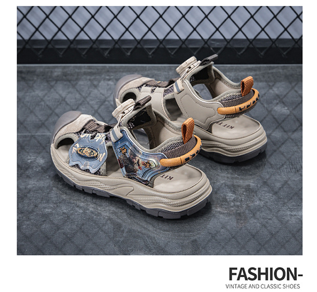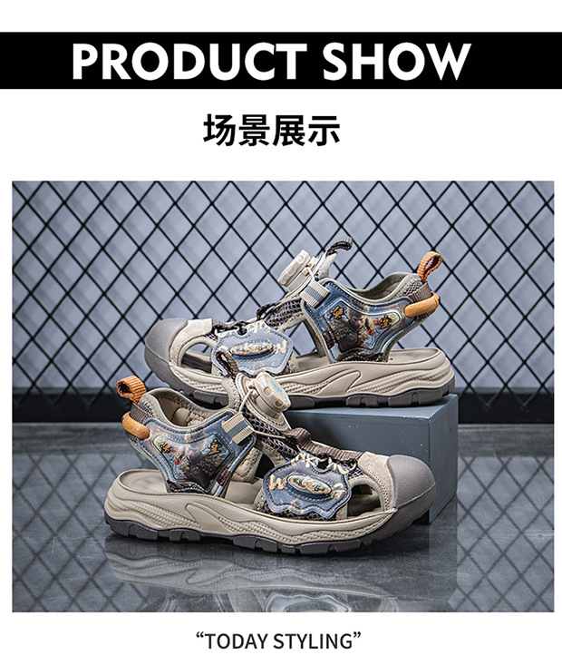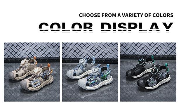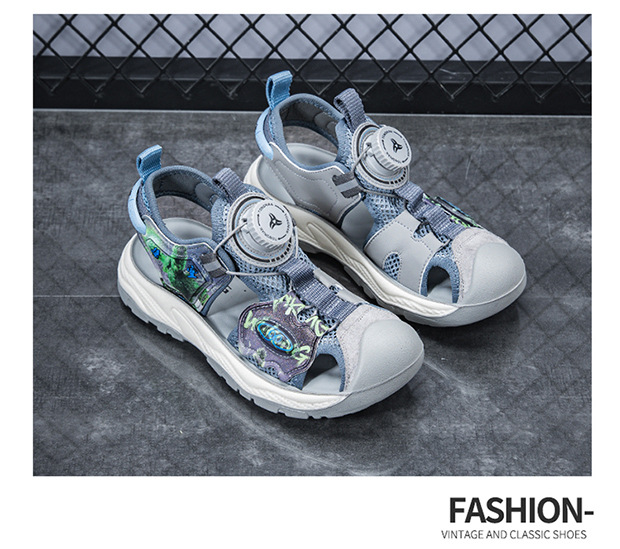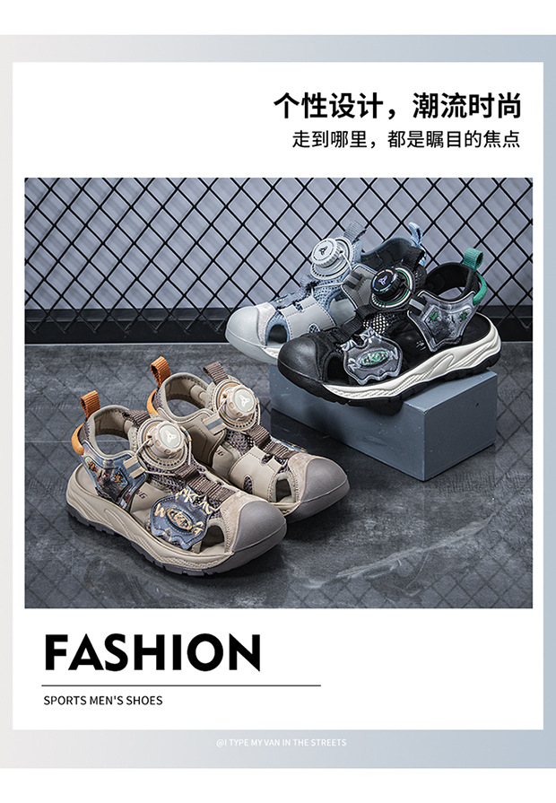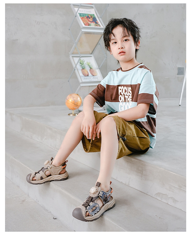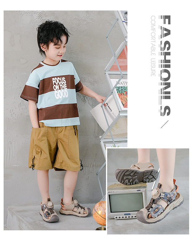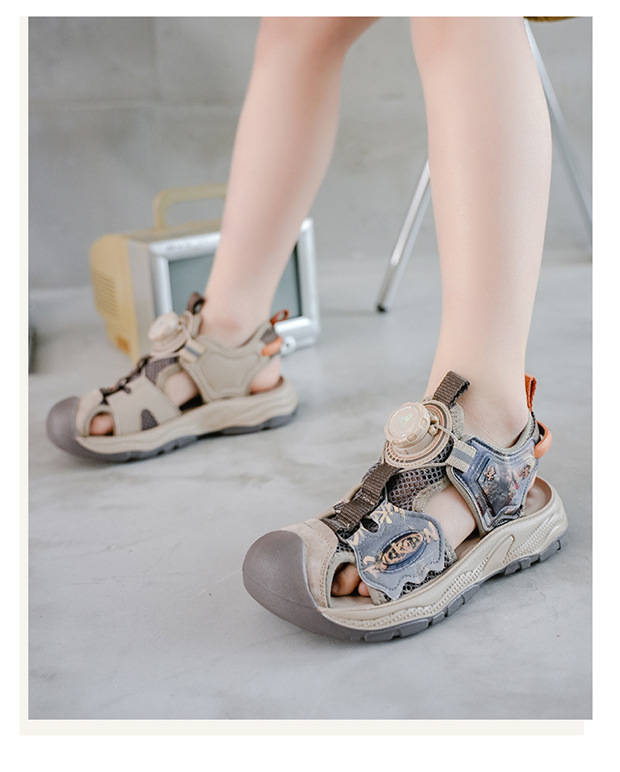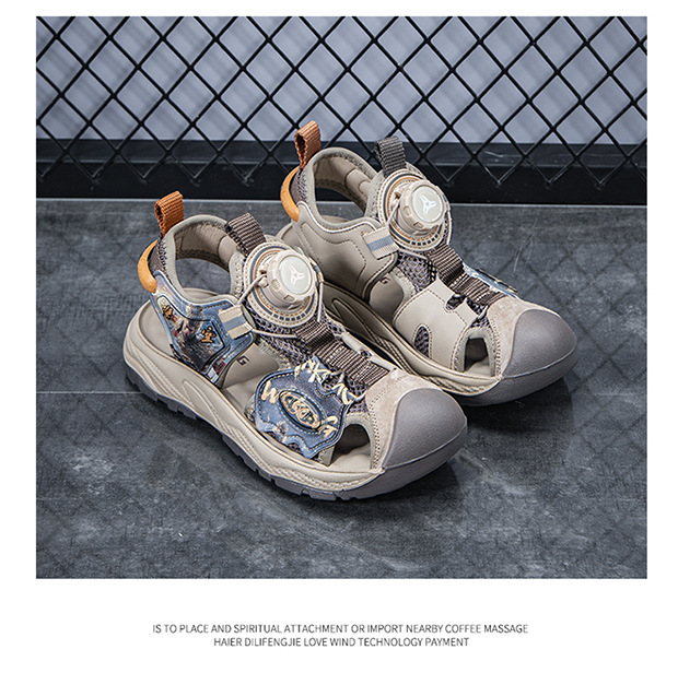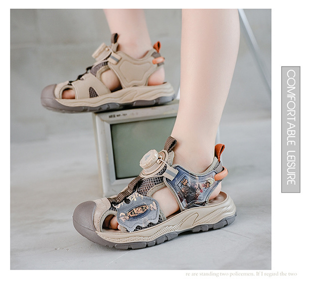 2025 년 여름 새로운 소년 중공 메쉬 신발 샌들 로터 버튼 소프트 하단 어린이 스포츠 샌들스토어 가기