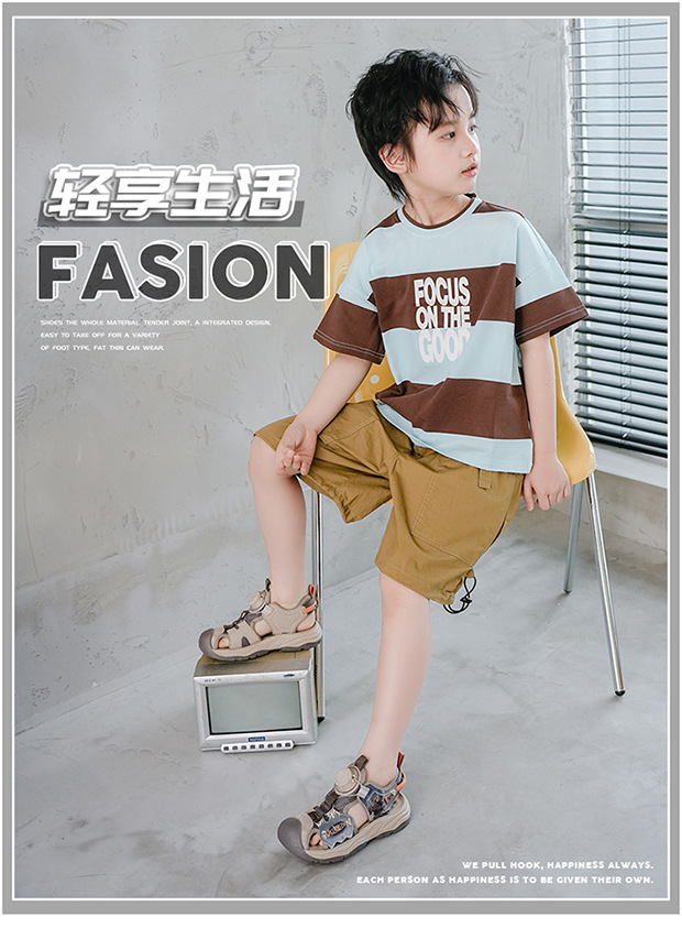2025 년 여름 새로운 소년 중공 메쉬 신발 샌들 로터 버튼 소프트 하단 어린이 스포츠 샌들