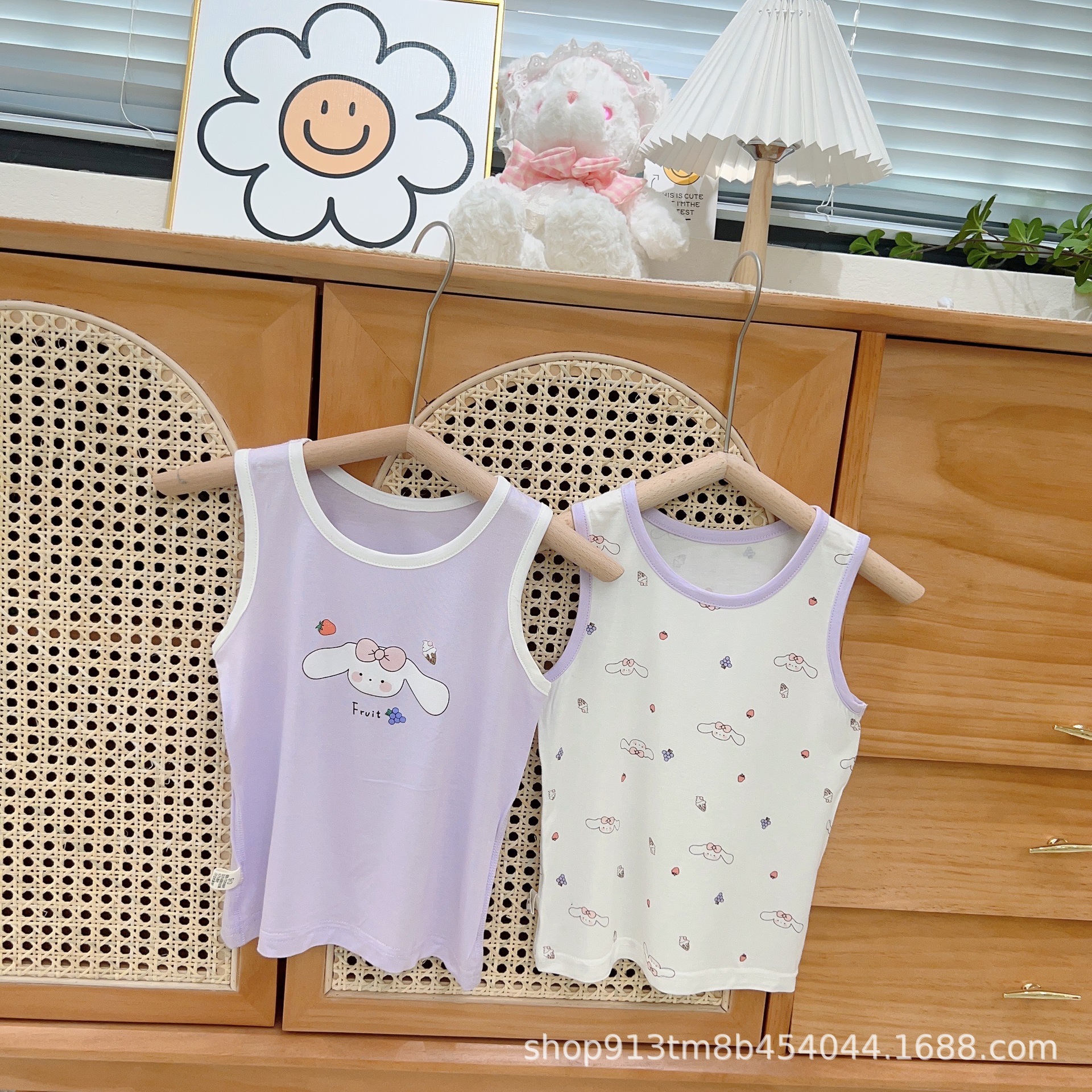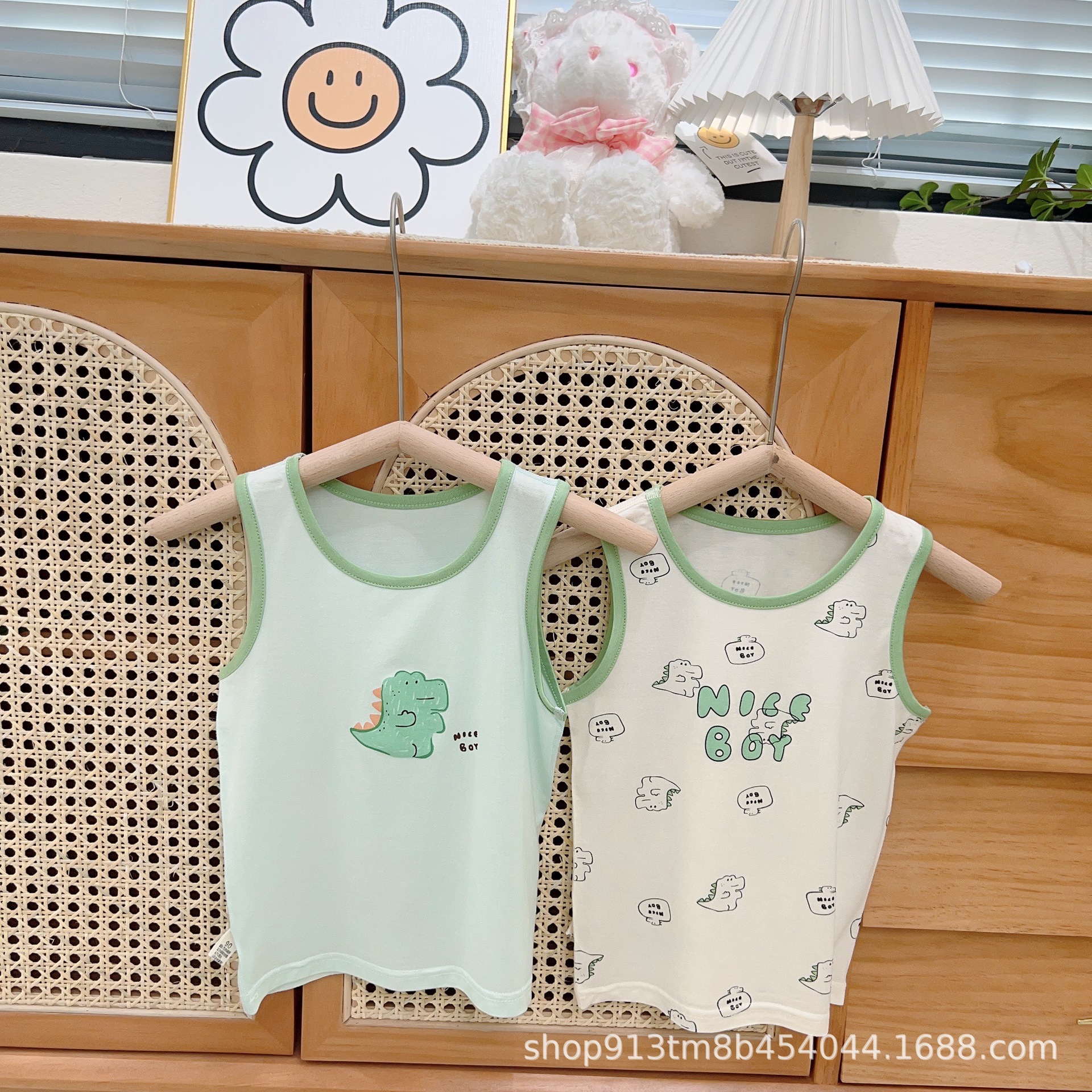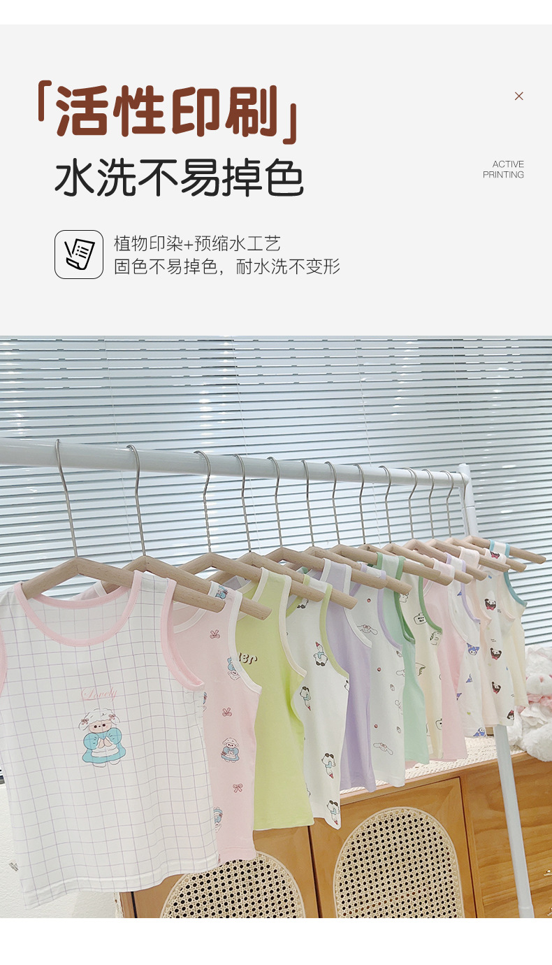 2024 새로운 녹색 Bor 아동복 조끼 모달 넓은 어깨 어린이 조끼 만화 기본 의류 제조 업체 재고스토어 가기