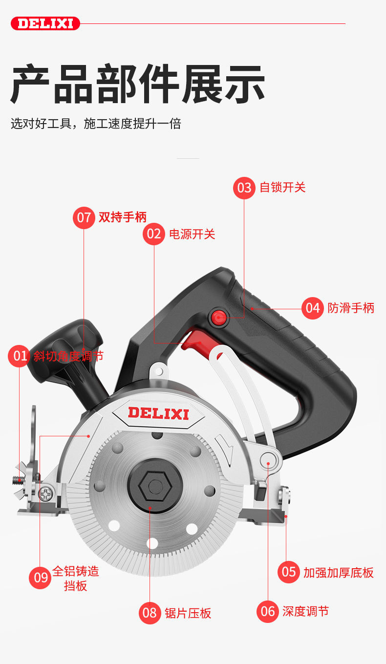 Delixi 절단 기계 다기능 목공 전기 톱 휴대용 세라믹 타일 강철 대리석 기계 고출력 가정용 슬롯 머신스토어 가기