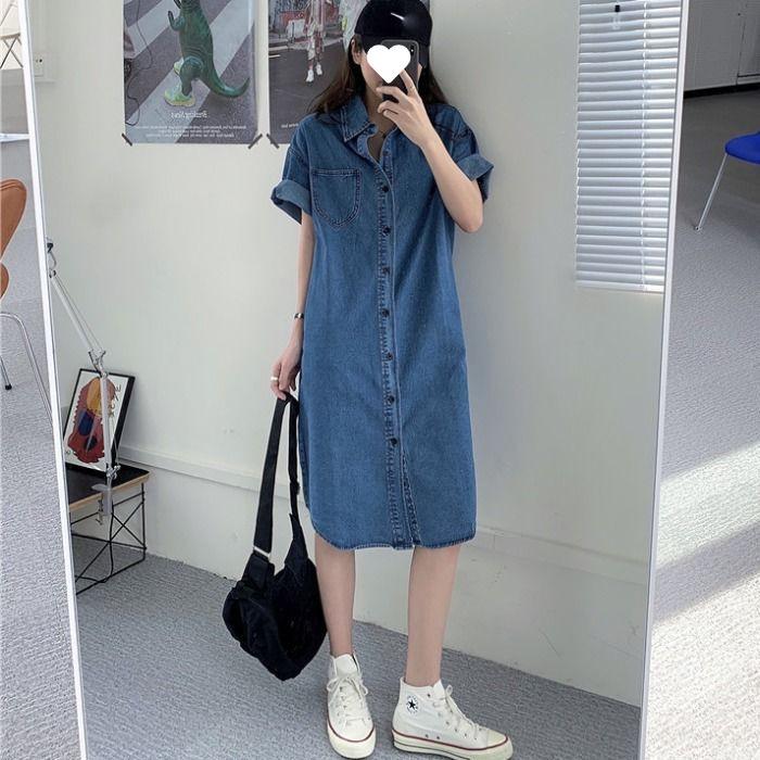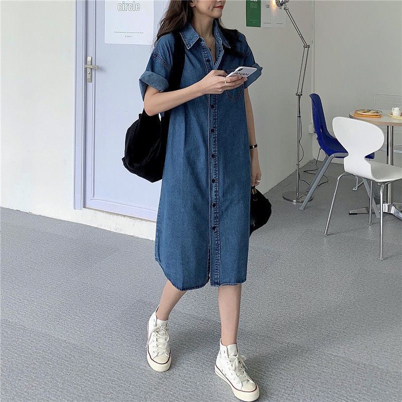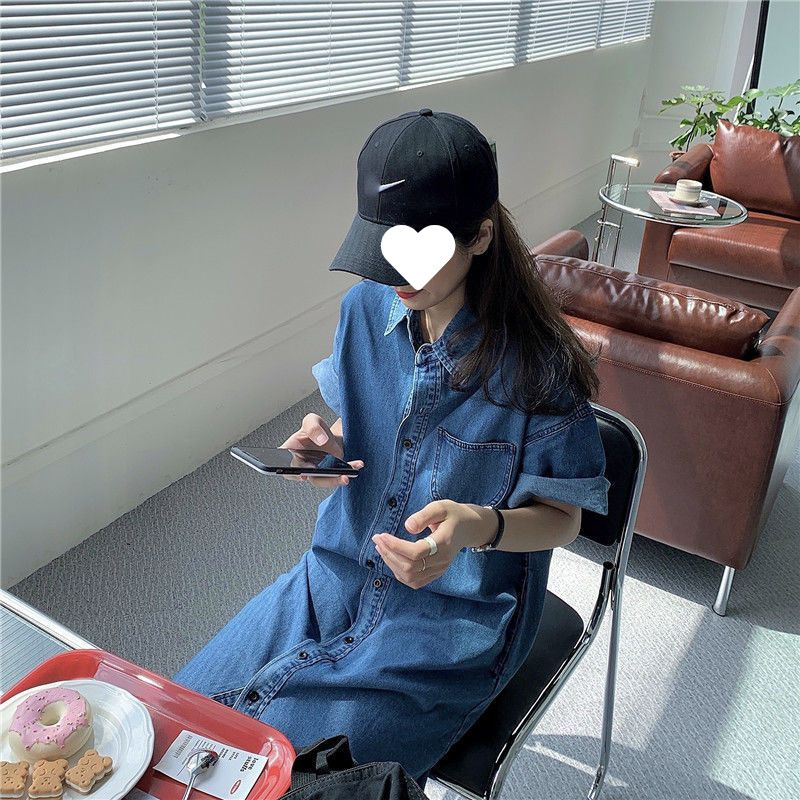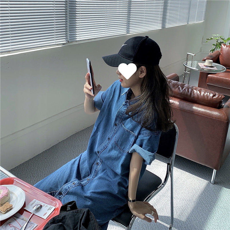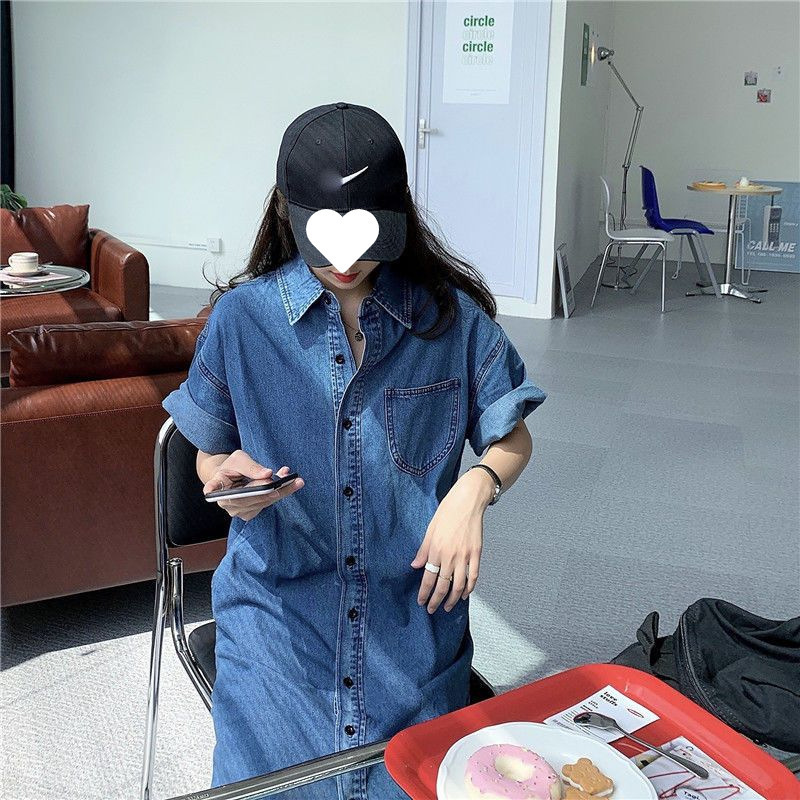 데님 원피스 여성의 봄과 가을 다크 블루 셔츠 원피스 2024 새로운 온라인 인기 한국 느슨한 캐주얼 원피스 트렌디스토어 가기